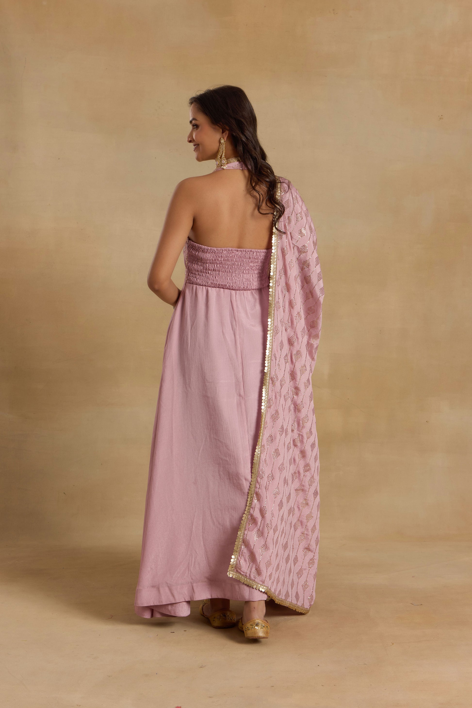 Nazaakat Heer Lilac Halter Neck Anarkali With Dupatta