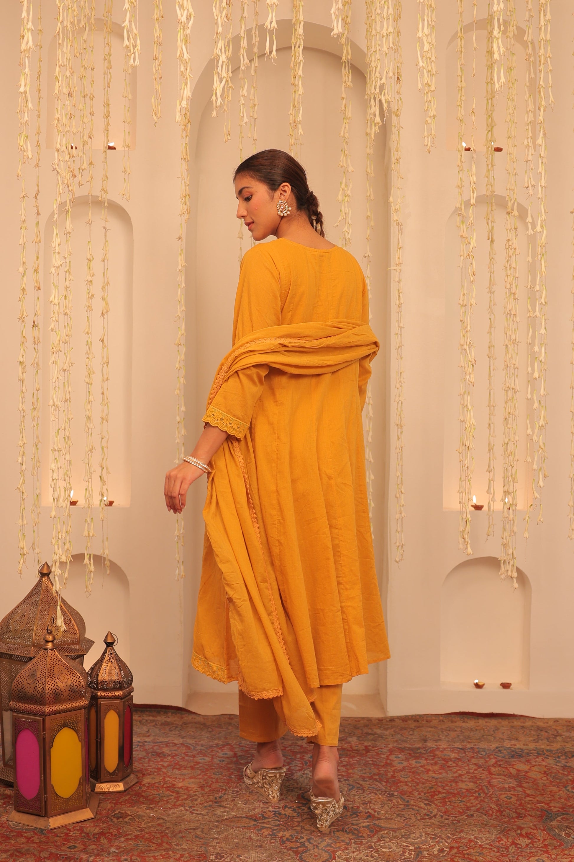This Anarkali Set in Yellow from our collection Mehfil is a perfect outfit for any Special Occasion.