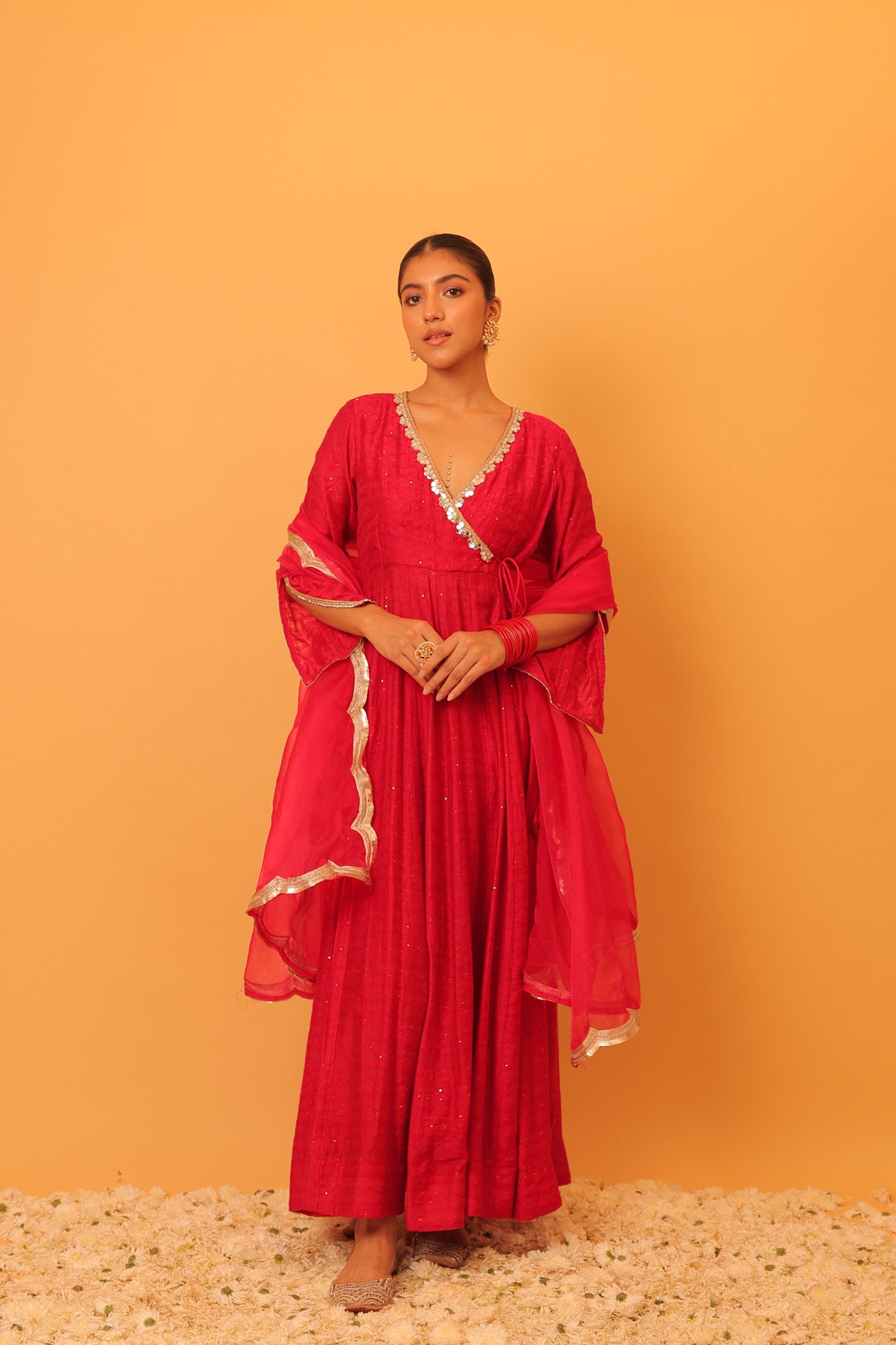 The Anarkali Set can be worn on Special Occasions like Festive Gatherings, Weddings, or Casual Outings.