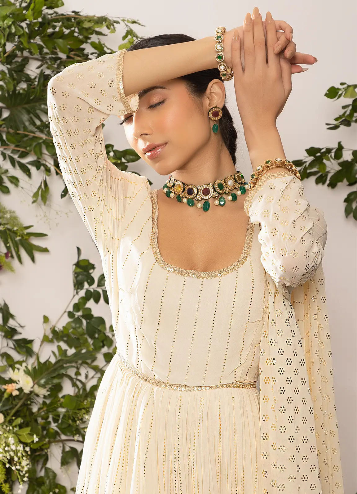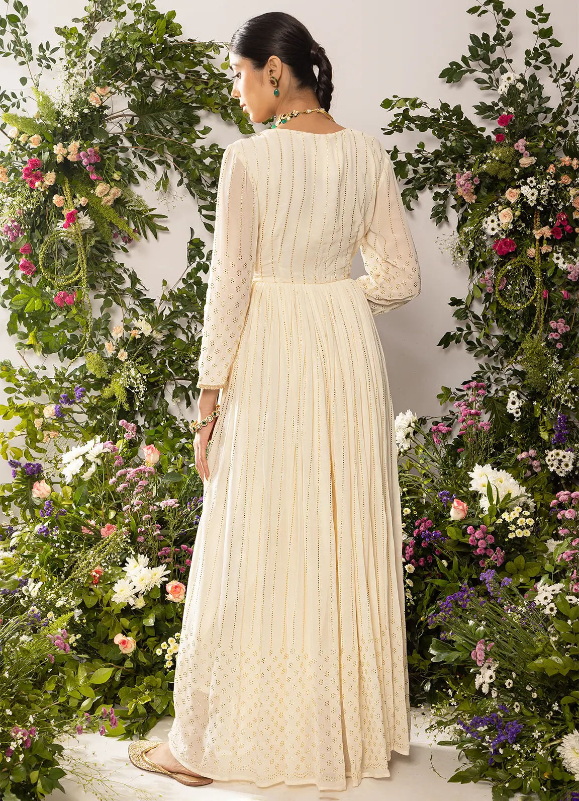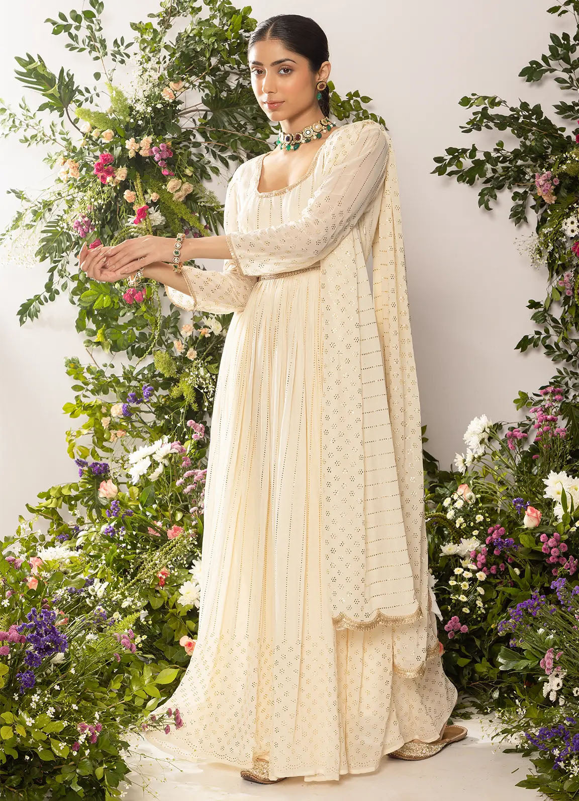 astoria Ivory Mukaish Work Anarkali with Dupatta