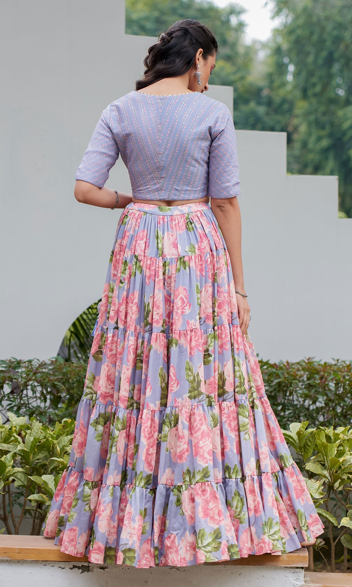 AZRA LILAC TIERED FLORAL PRINTED LEHENGA WITH BLOUSE & DUPATTA - SET OF 3