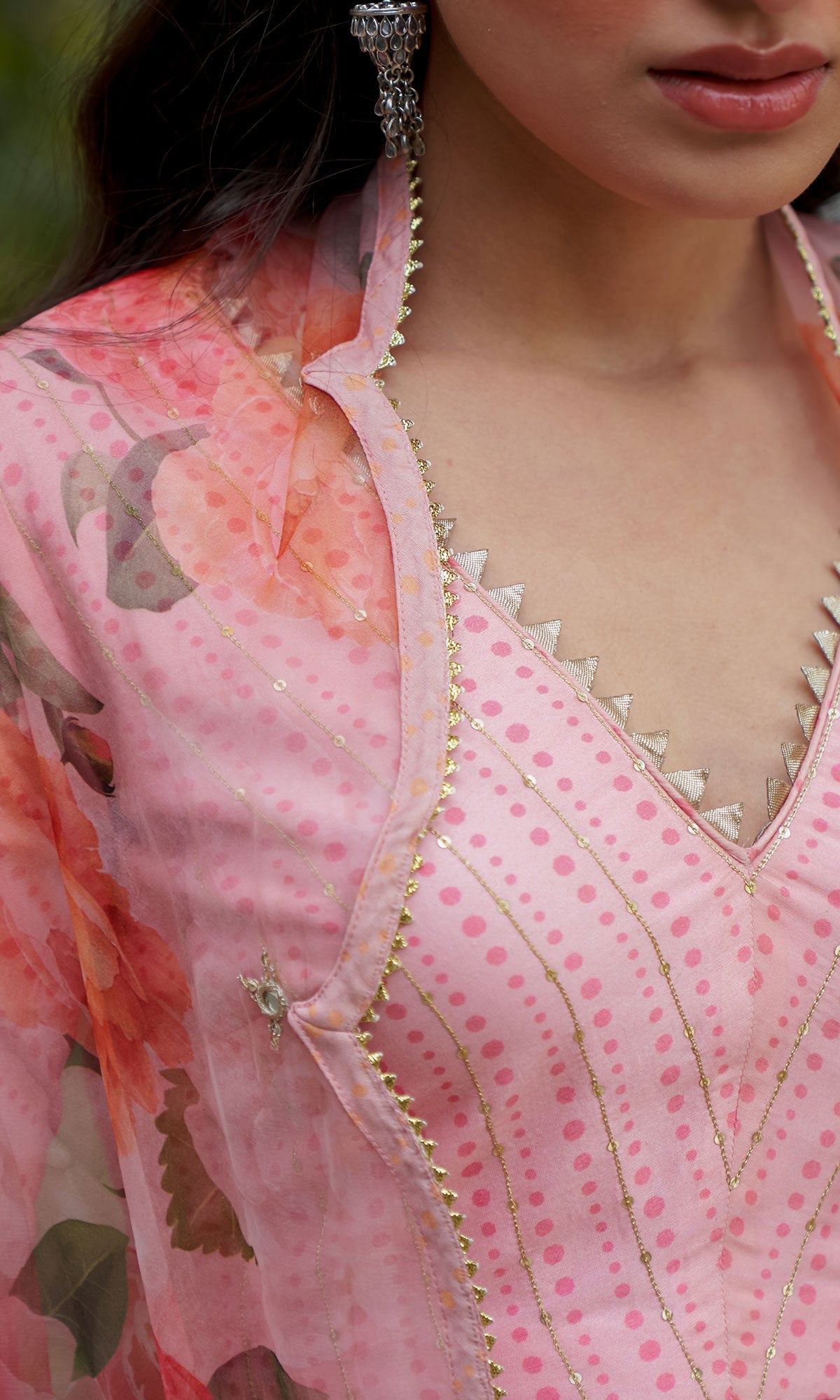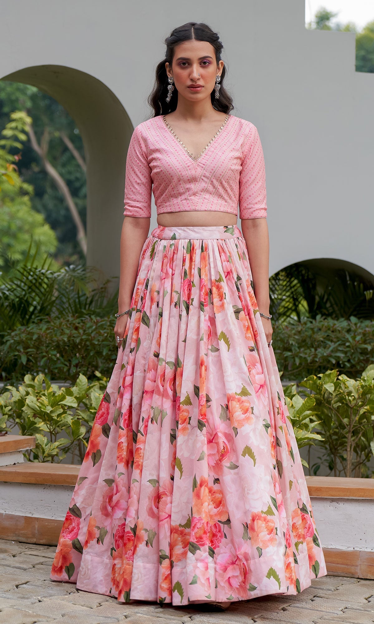 AZRA PINK FLORAL PRINTED LEHENGA SET - SET OF 3