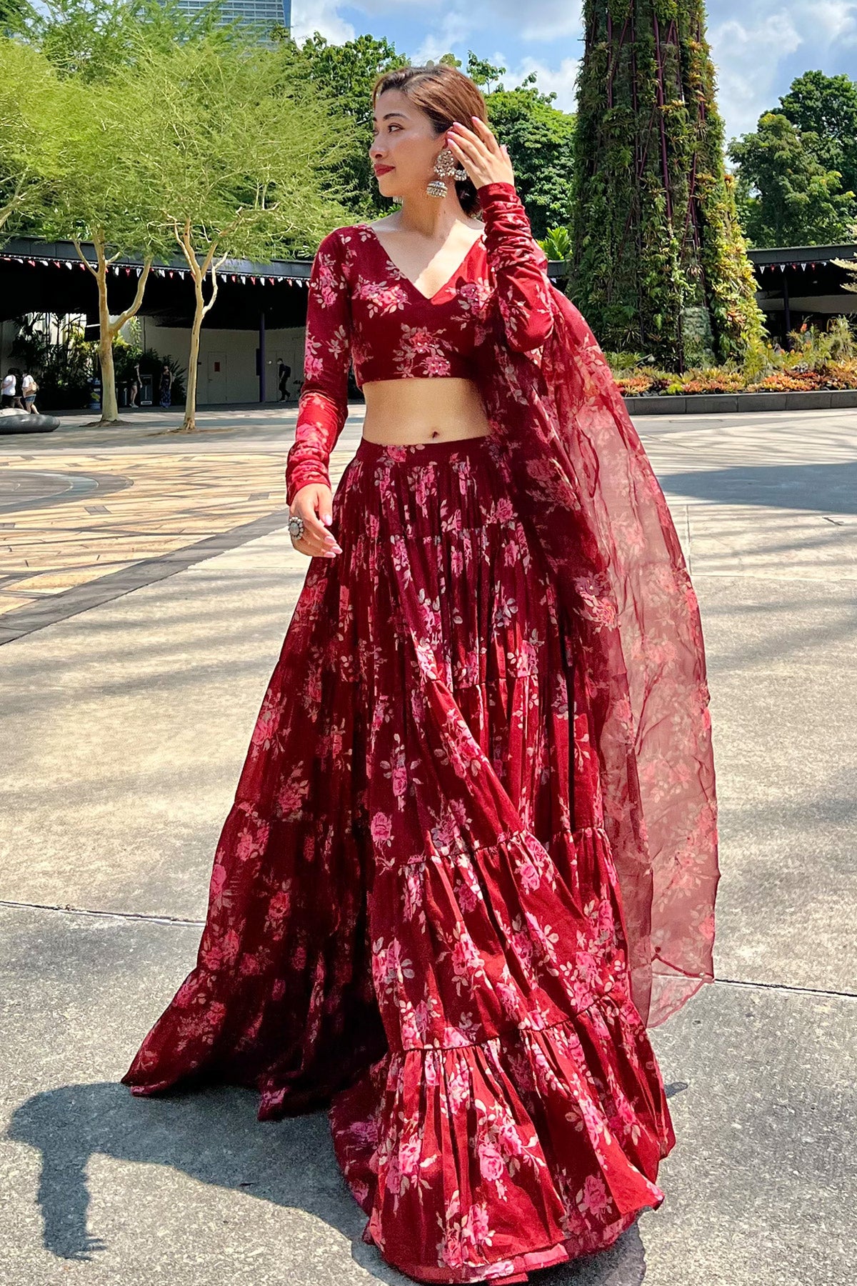 This three piece set includes Lehenga, Blouse and Dupatta.