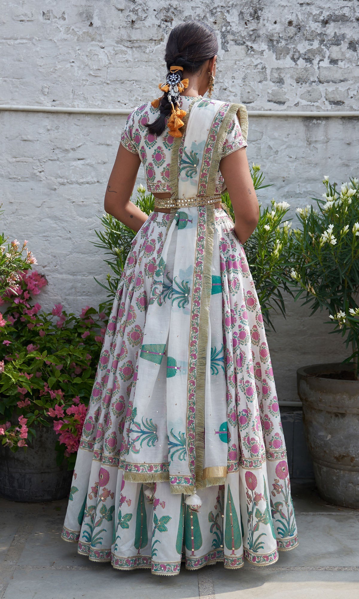 Boond Vol. 2 White Block Printed Lehenga,blouse With Dupatta (Set Of 3)