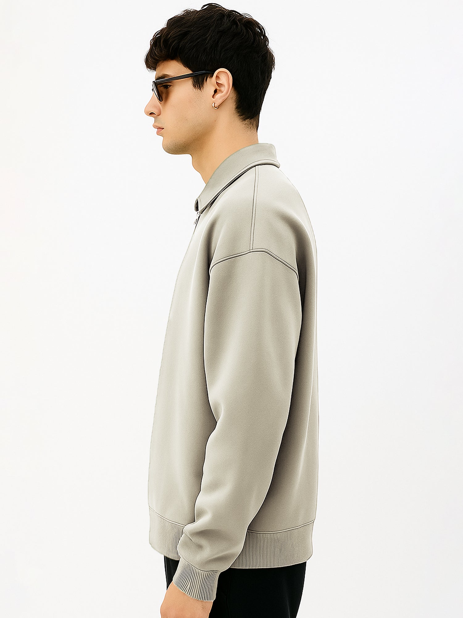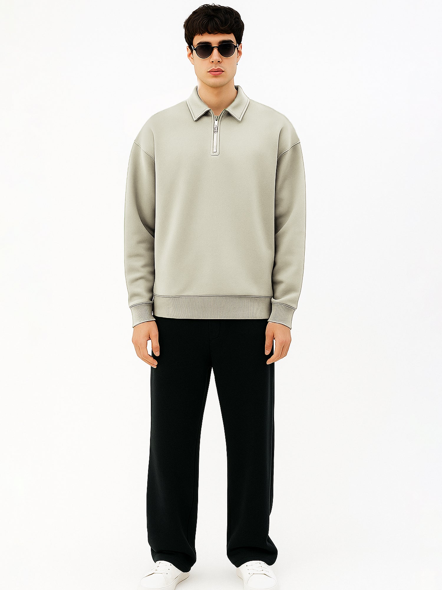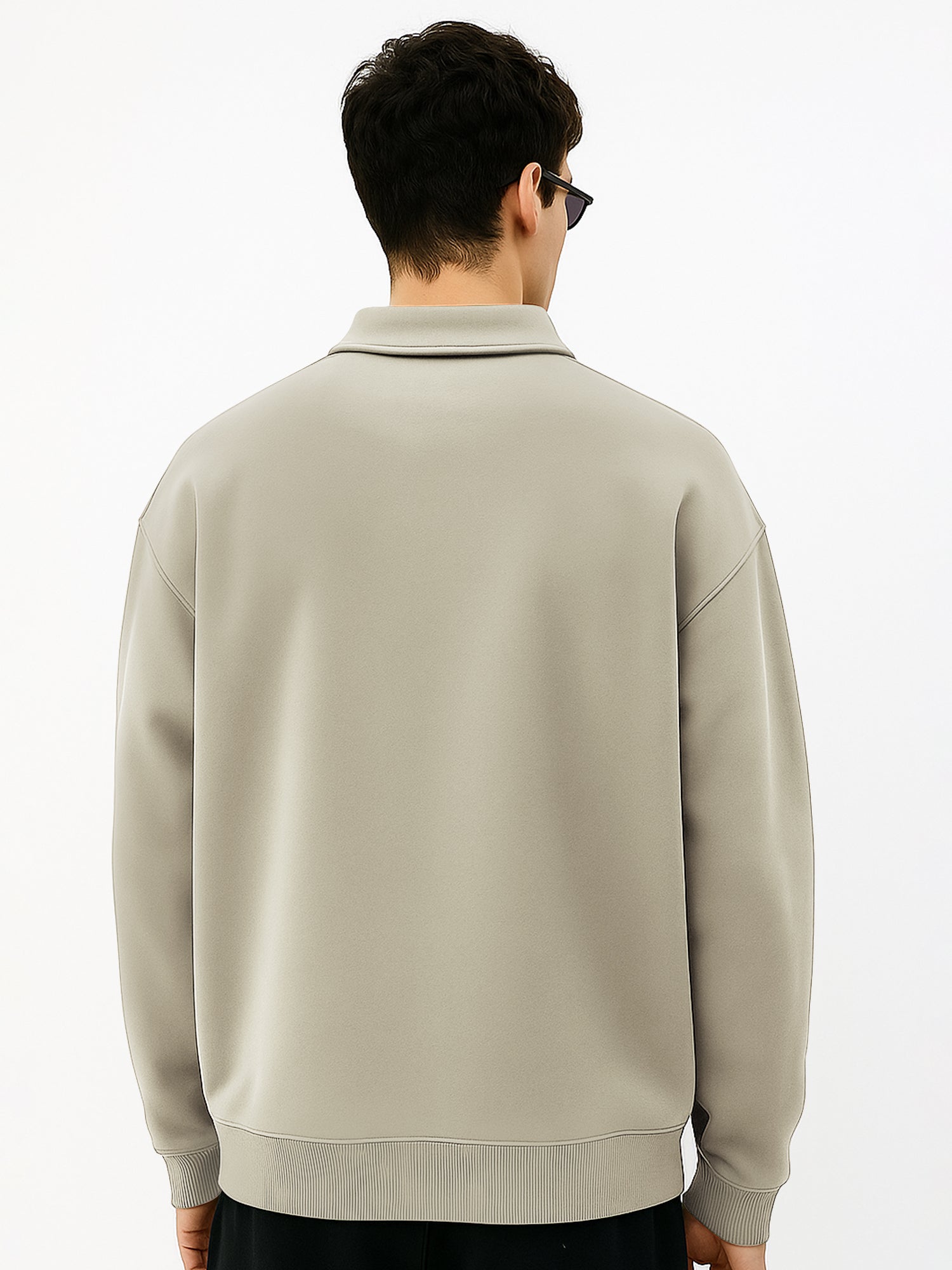 Cozy Cut Polo Zipper Full Sleeve Biscuit Sweatshirt