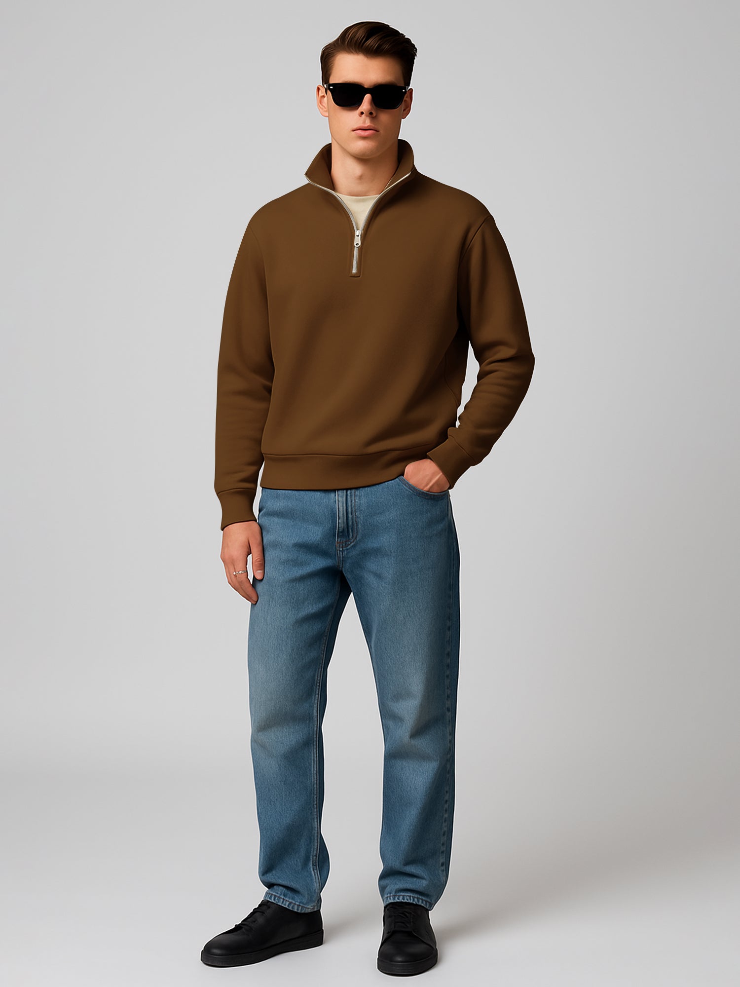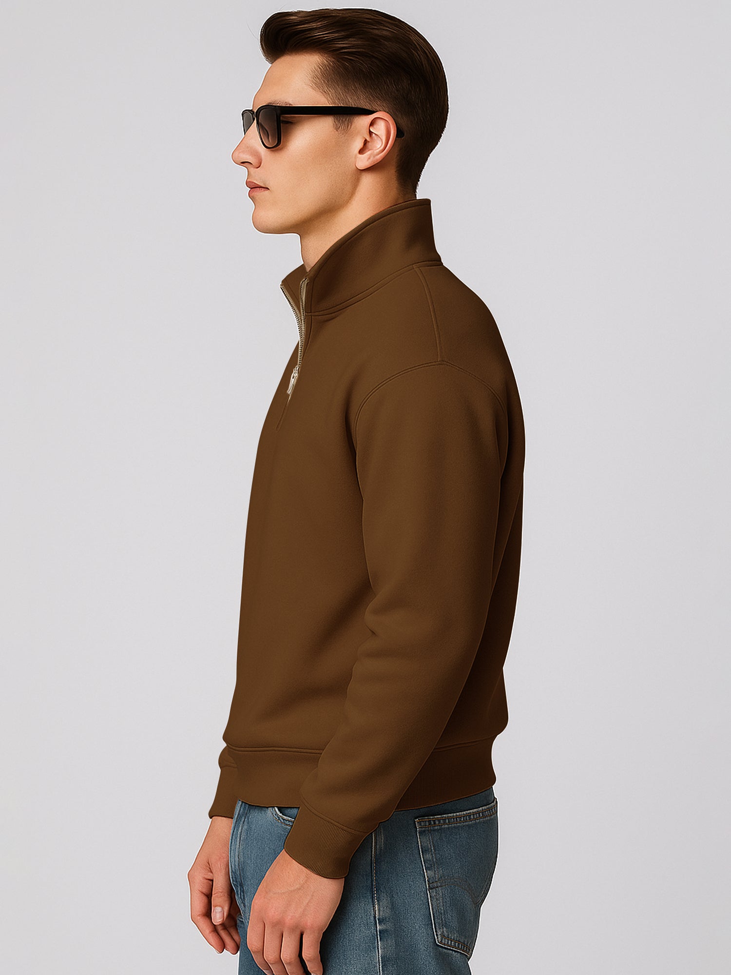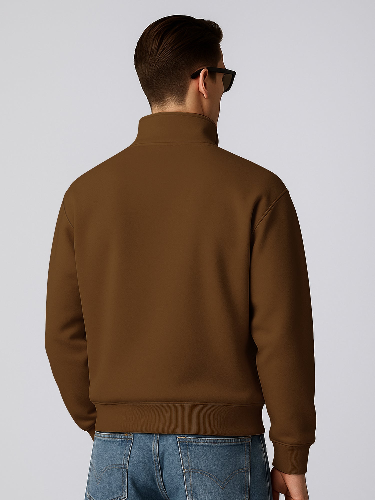 Cozy Cut Zipper Full Sleeve Brown Sweatshirt