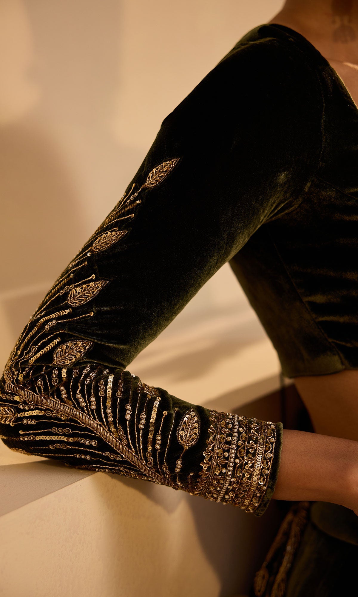 - TECHNIQUE USED: Hand Embroidery, Aari Machine Embroidery