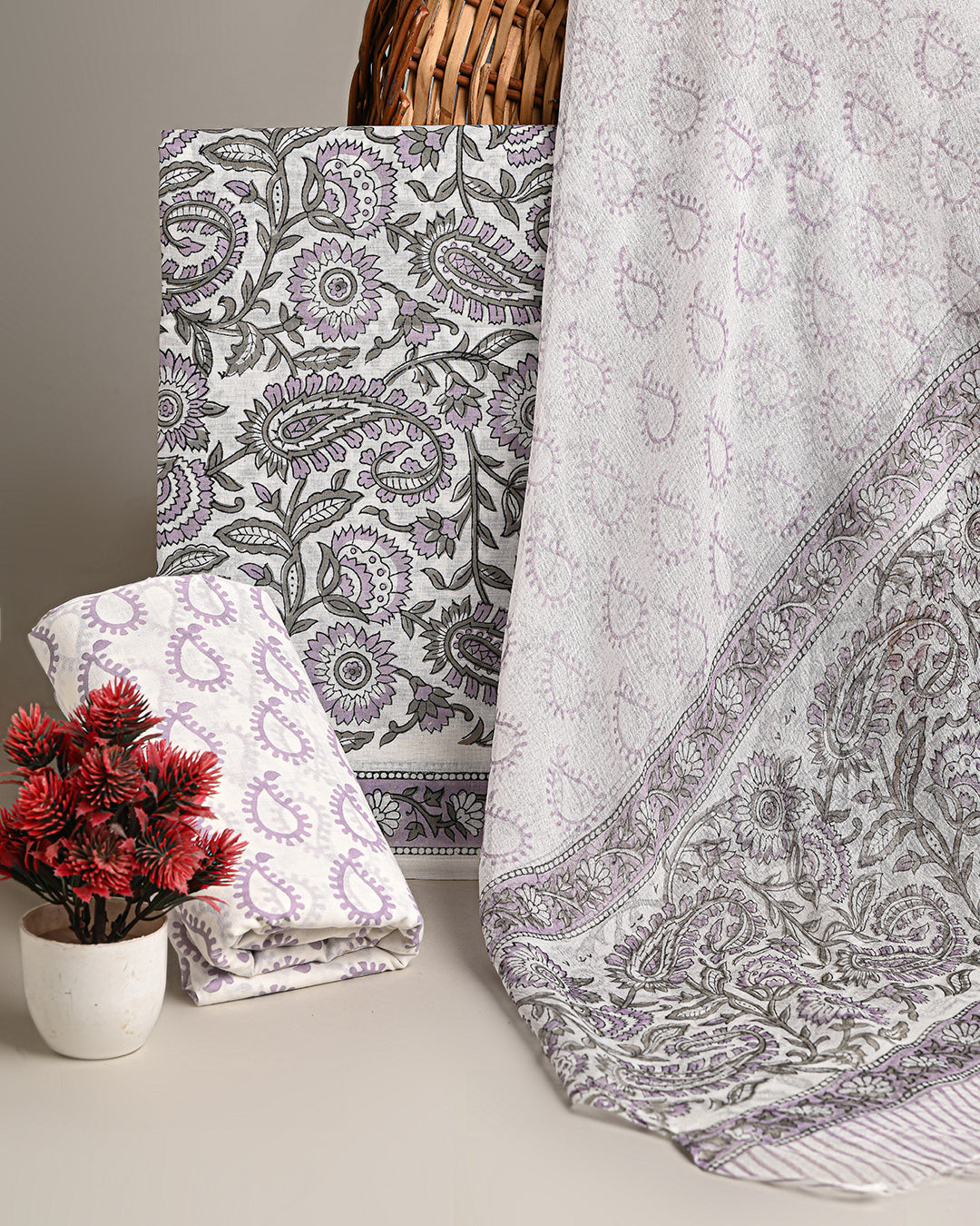 Hand block printing is a centuries old art form that utilizes a hand carved wood block , dipped in dye and stamped by hand onto fabric.