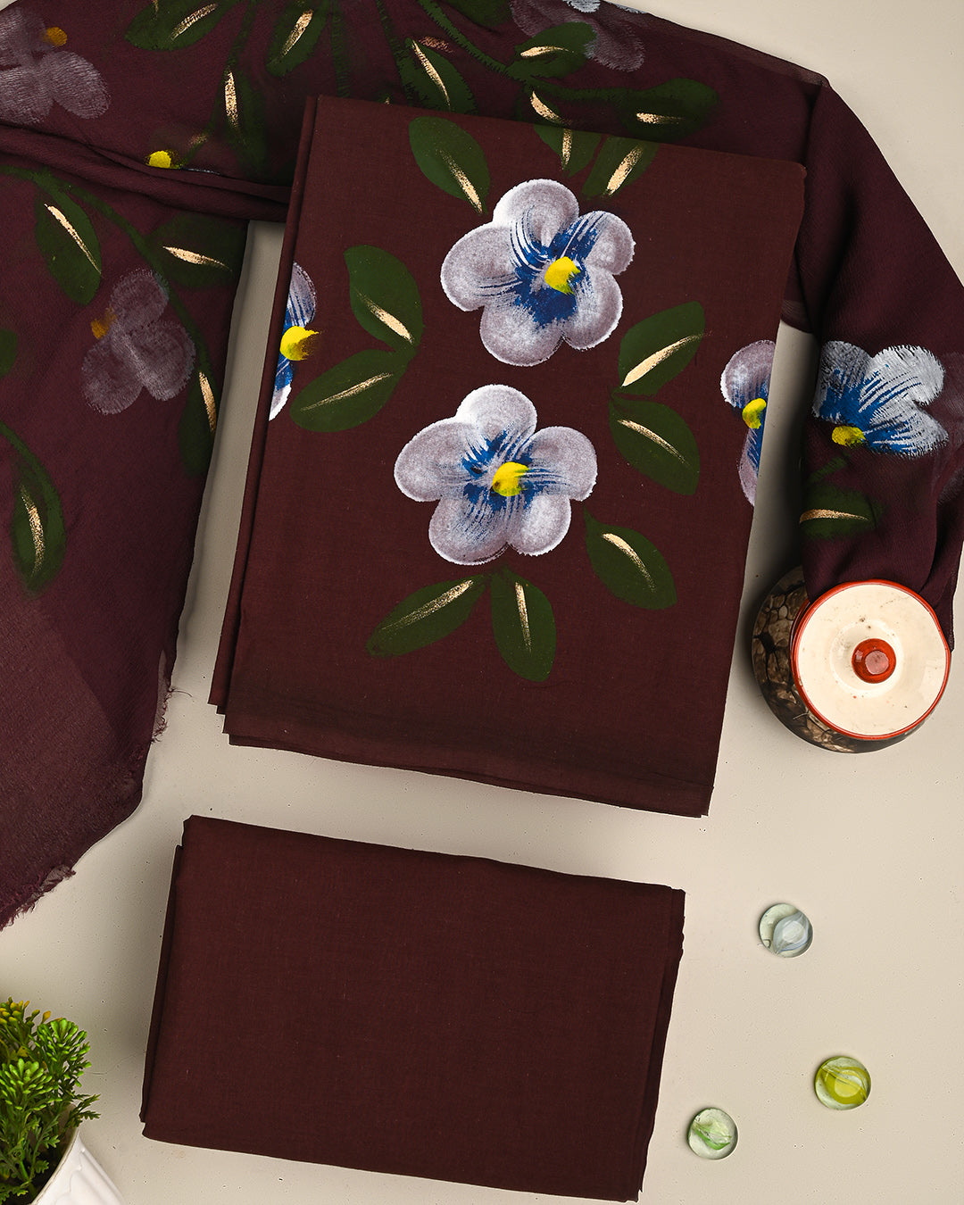 Exclusive Hand Painted Cotton Suit With Chiffon Dupatta CFCOTCH59