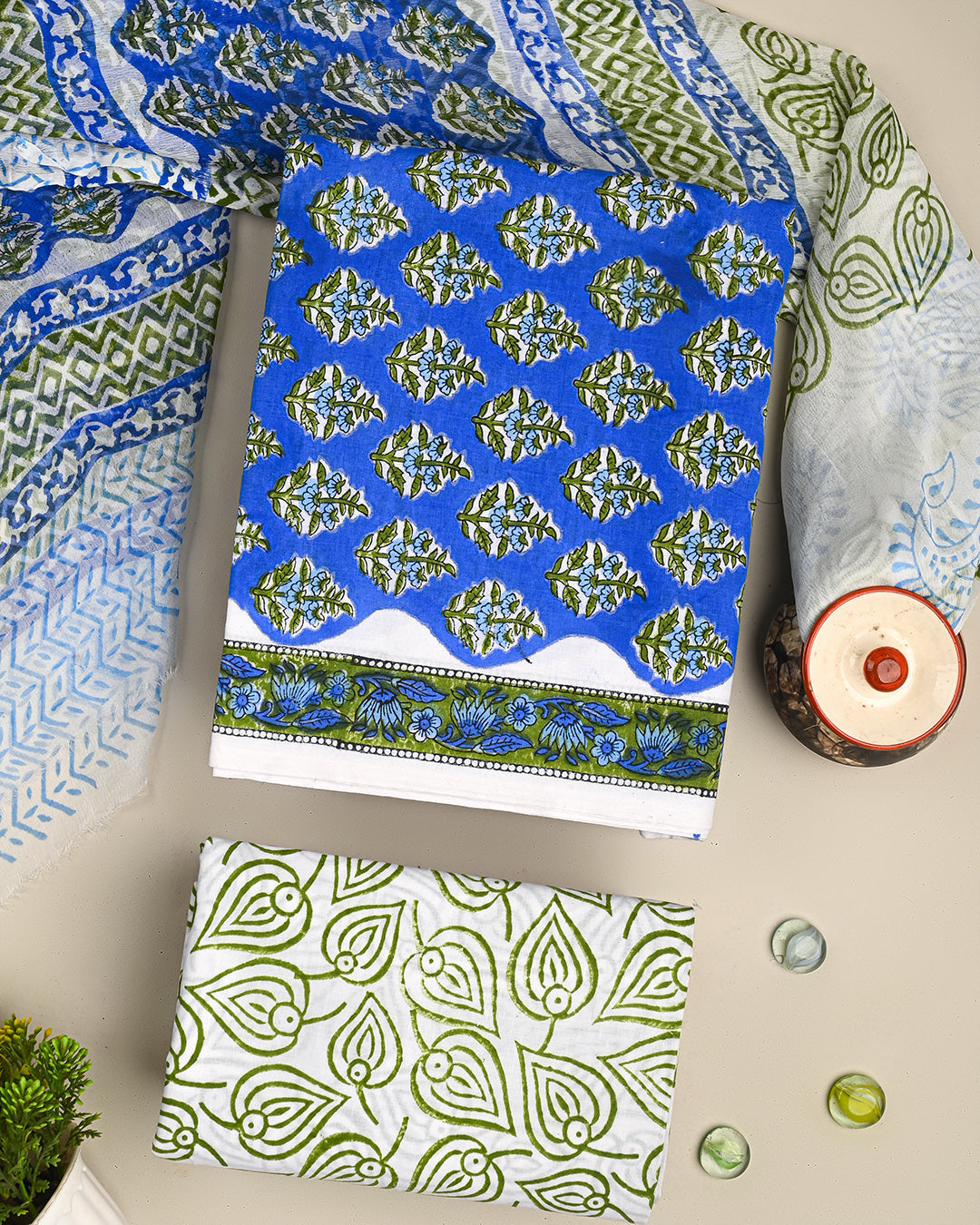 Exclusive Sanganeri Print Cotton Suit With Chiffon Dupatta CFCOTCH10