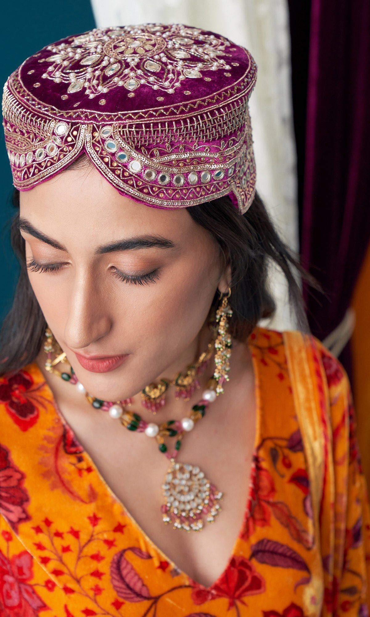 - FABRIC USED: Blouse - Silk Velvet Lined With Shantoon , Lehenga - Silk Velvet , Shawl - Silk Velvet