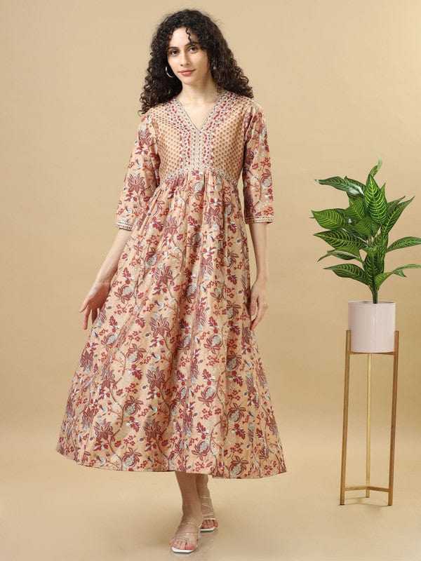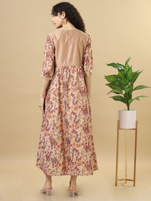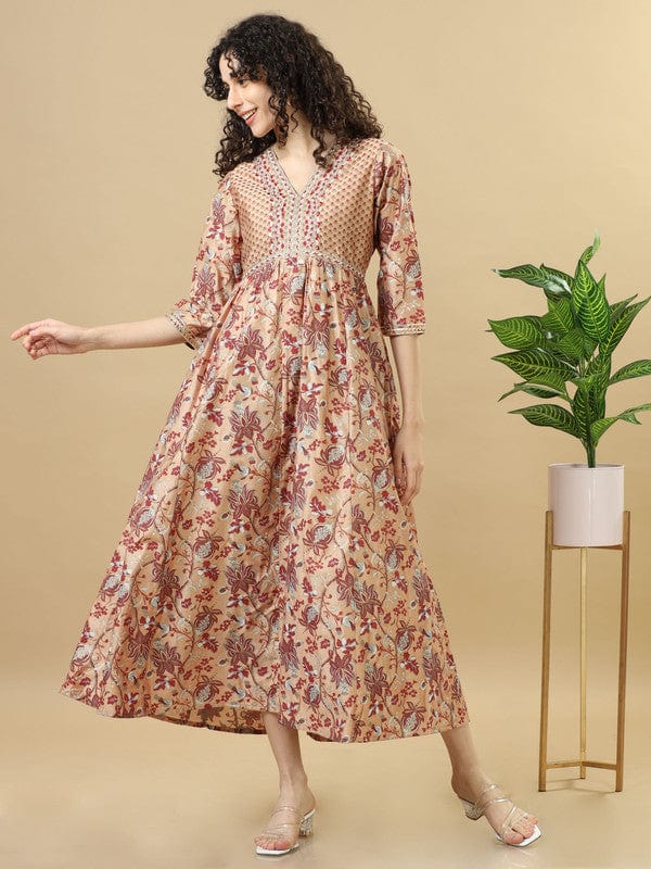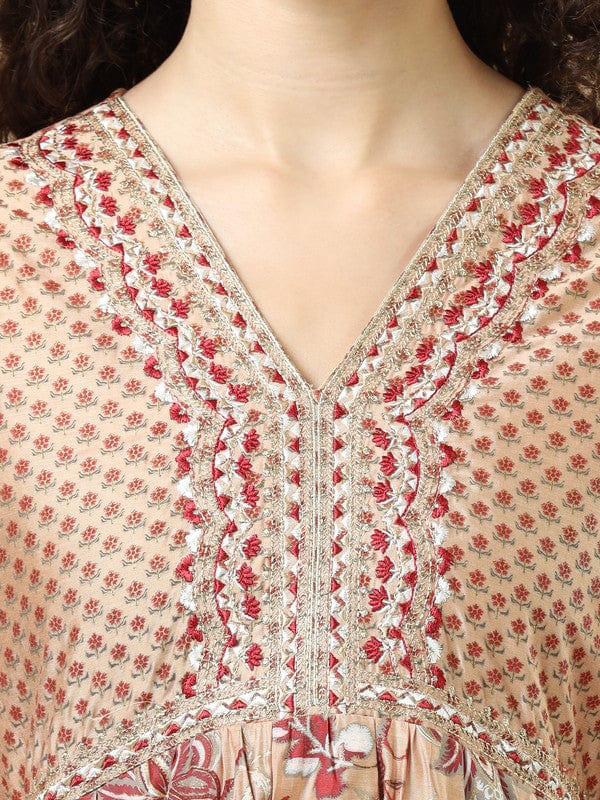 Maroon 3/4Th Sleeves Chanderi Loose Fit Ankle Length Flared Kurta Set - With Dupatta, No Bottom