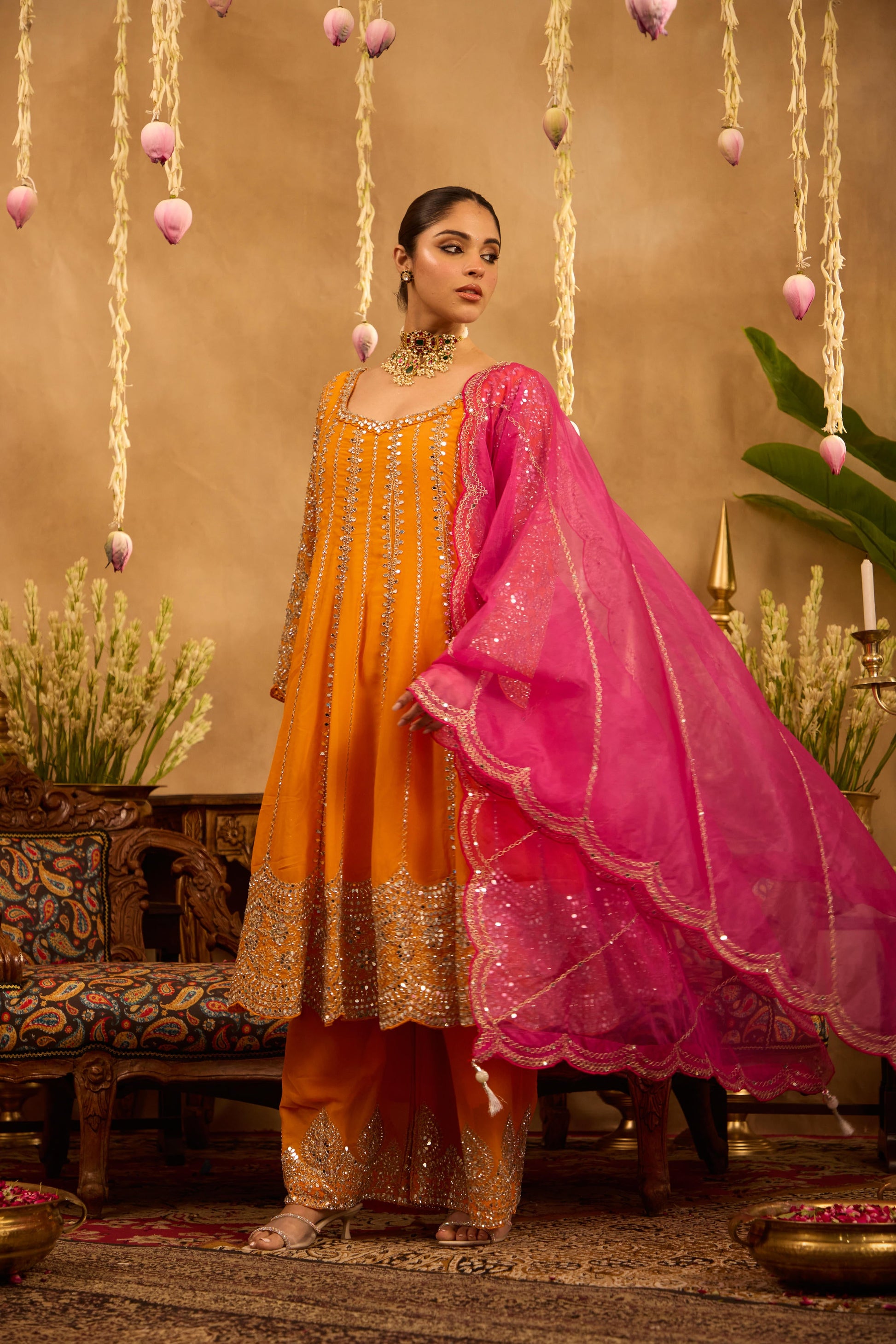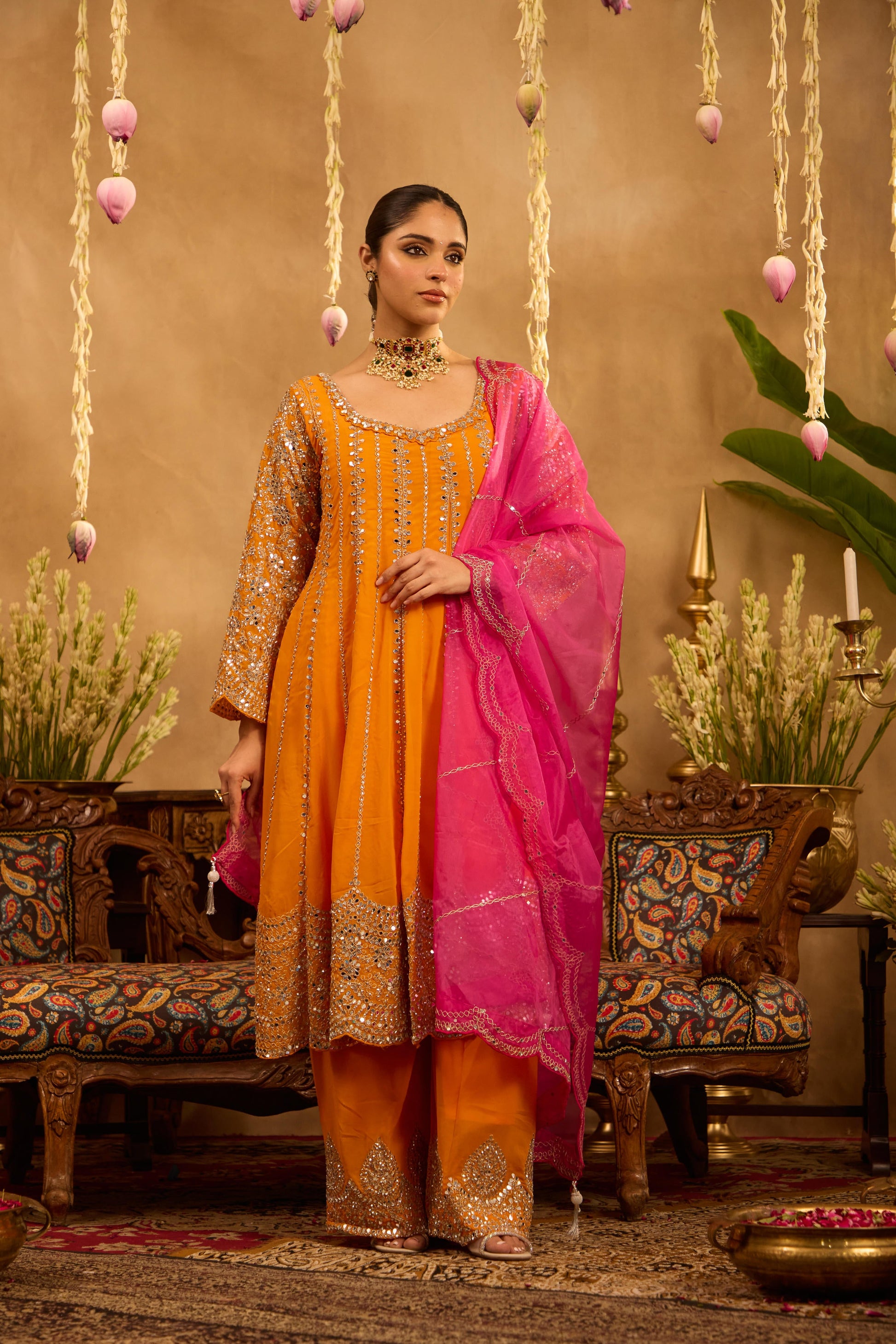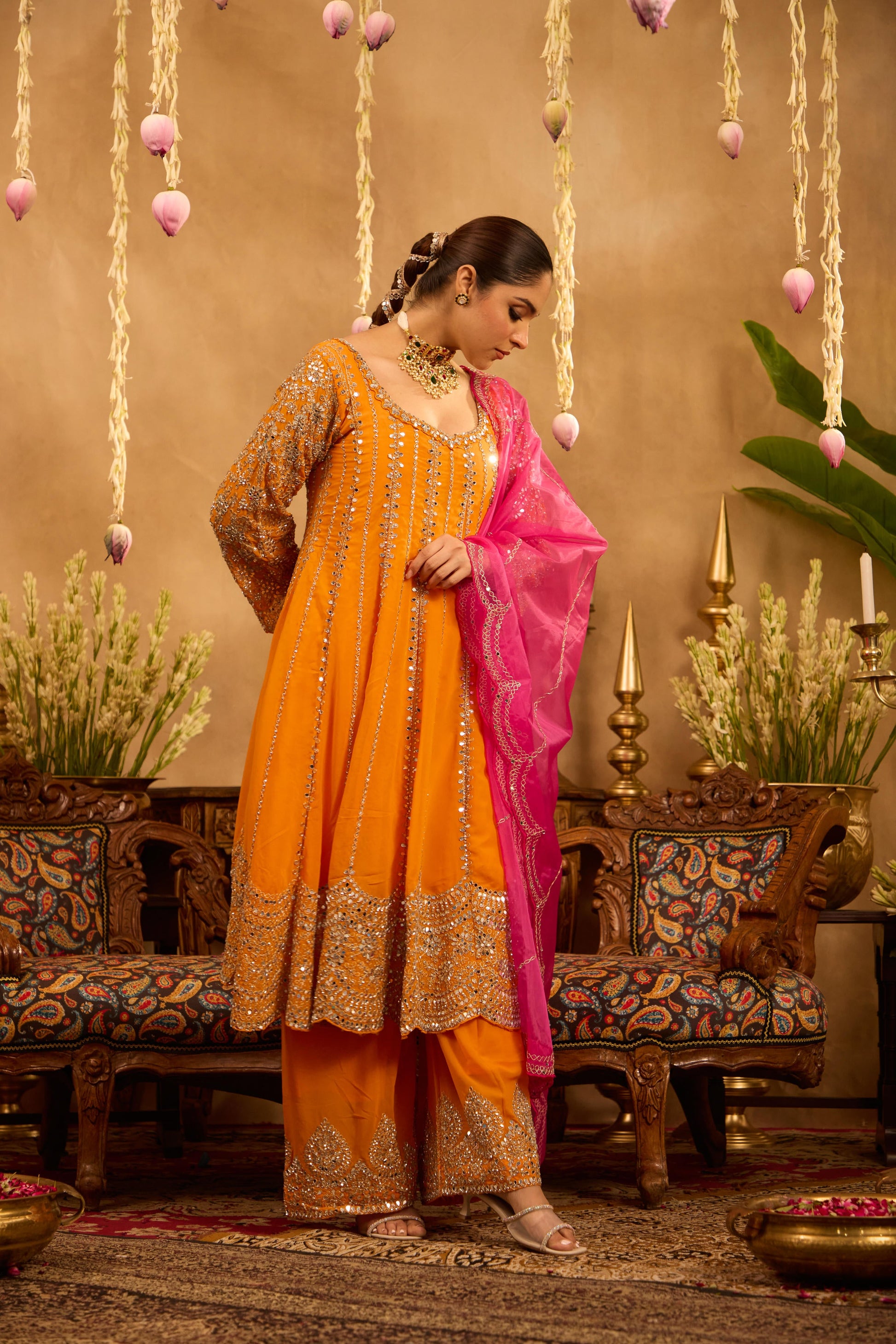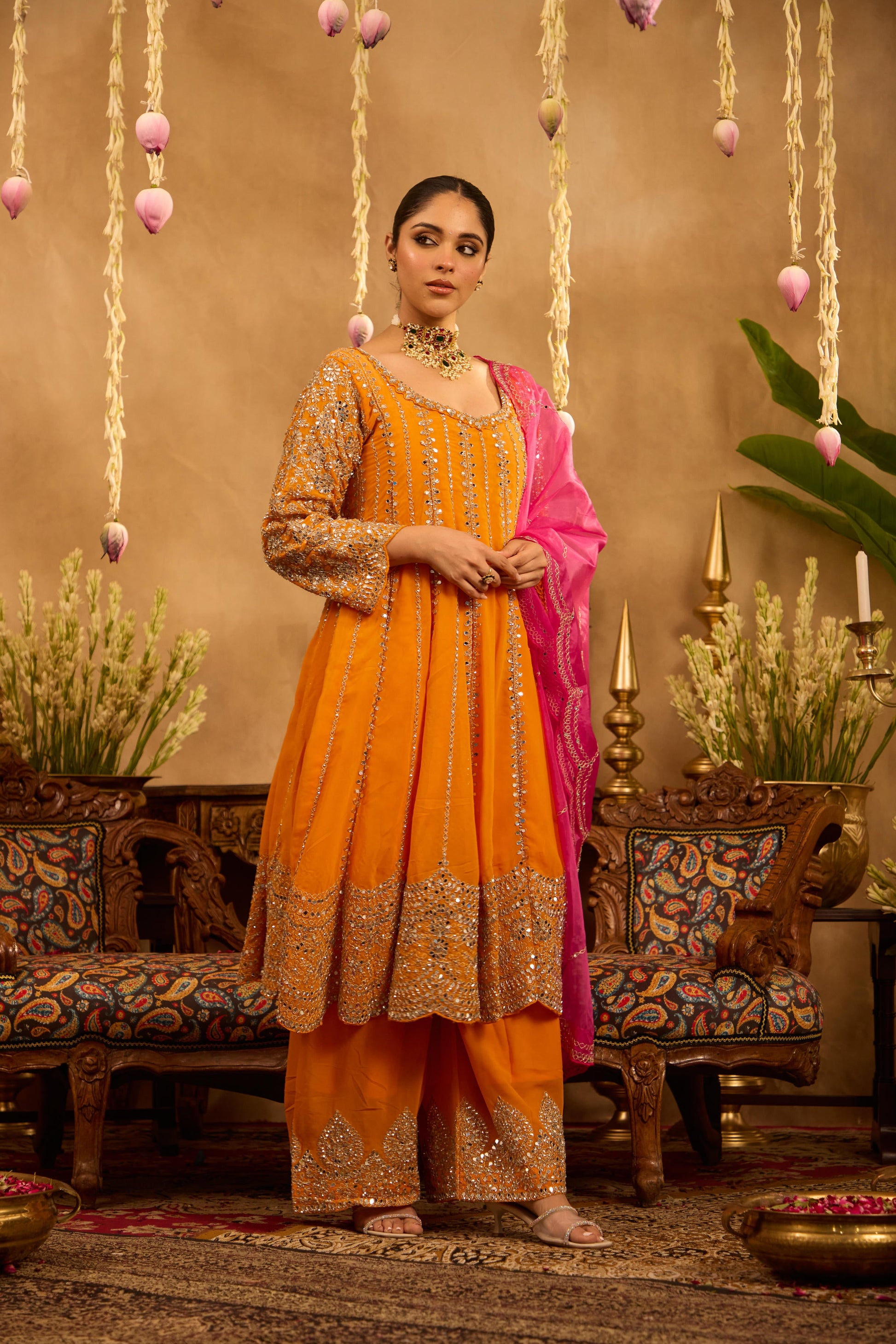 Mastaani Tangerine Mirror Anarkali Set