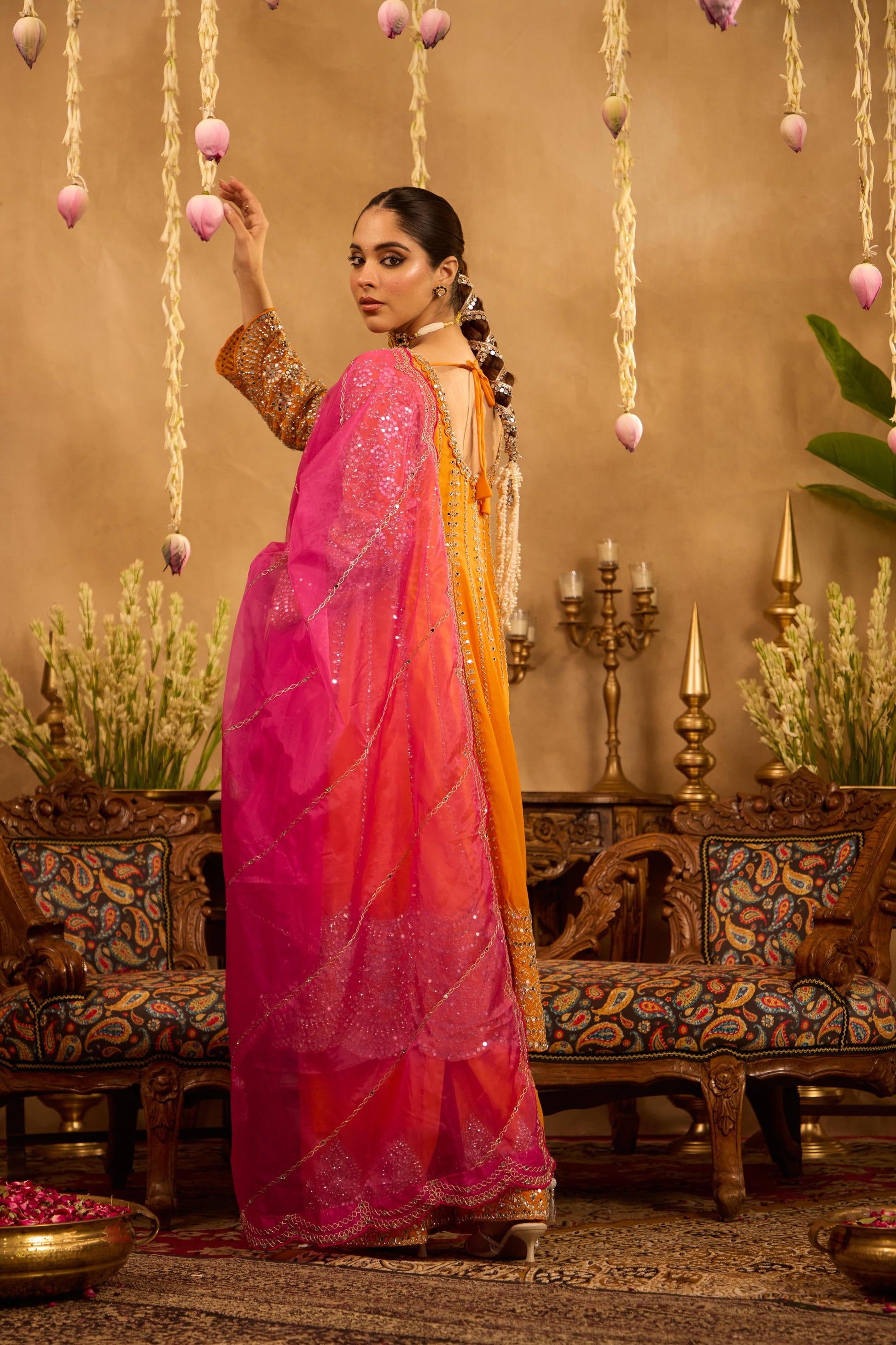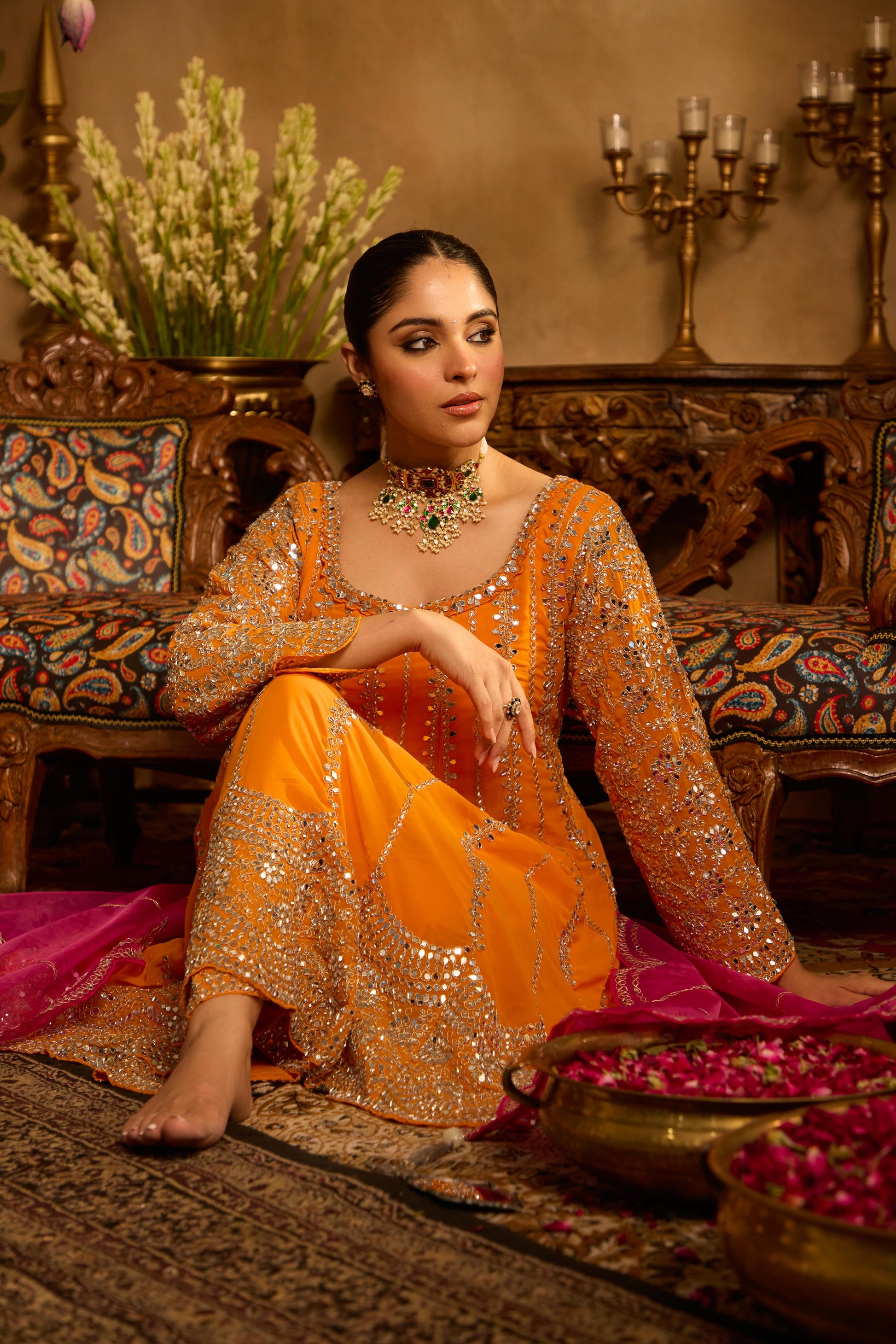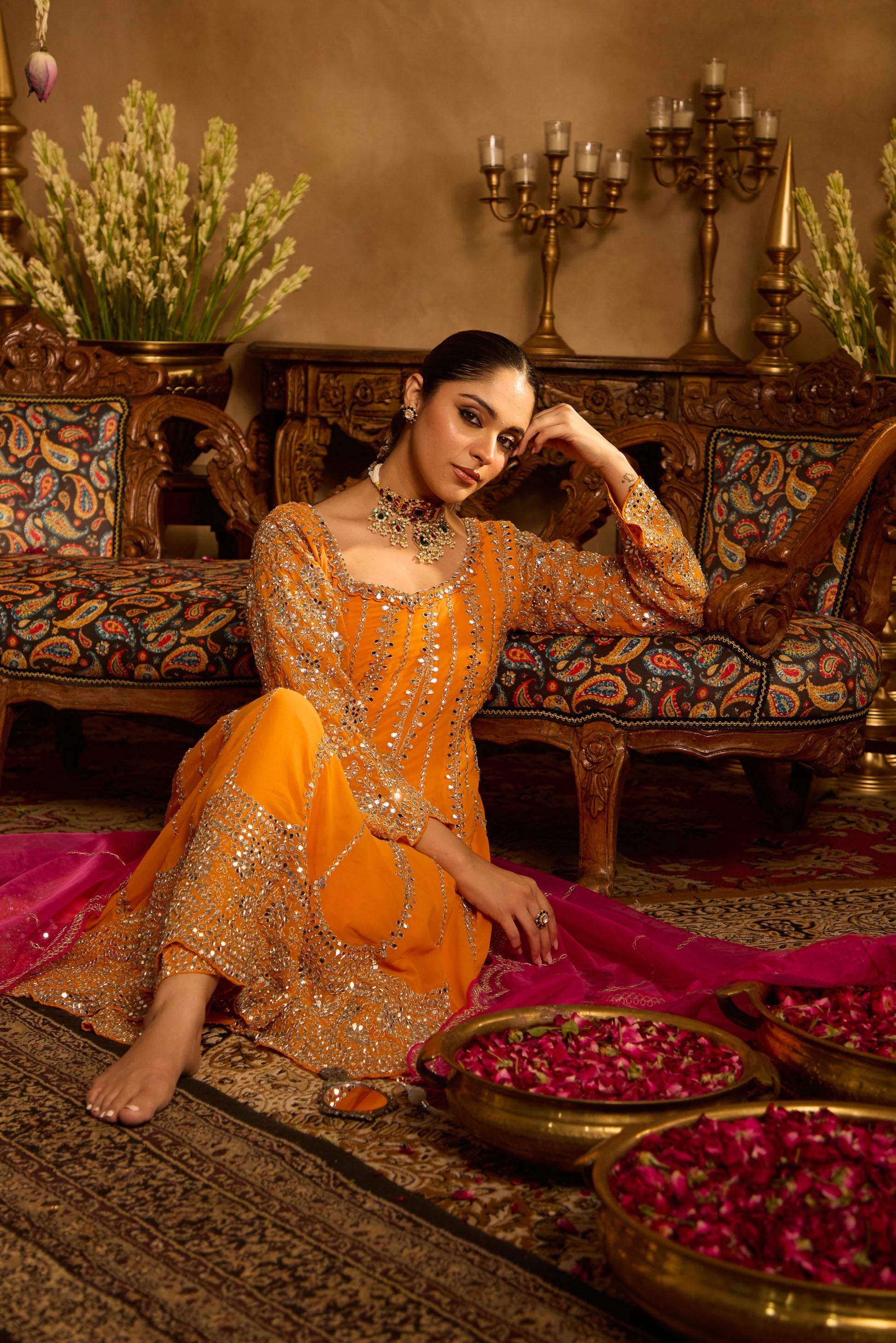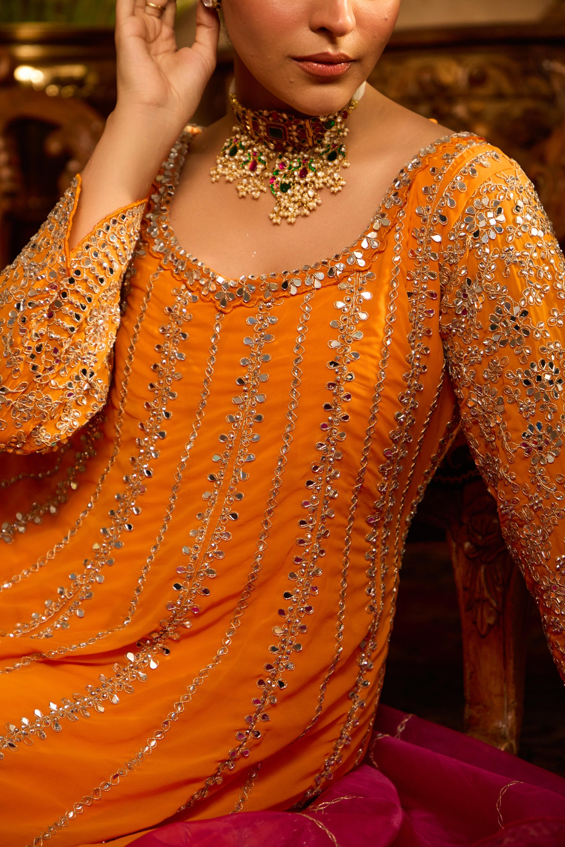Mastaani Tangerine Mirror Anarkali Set
