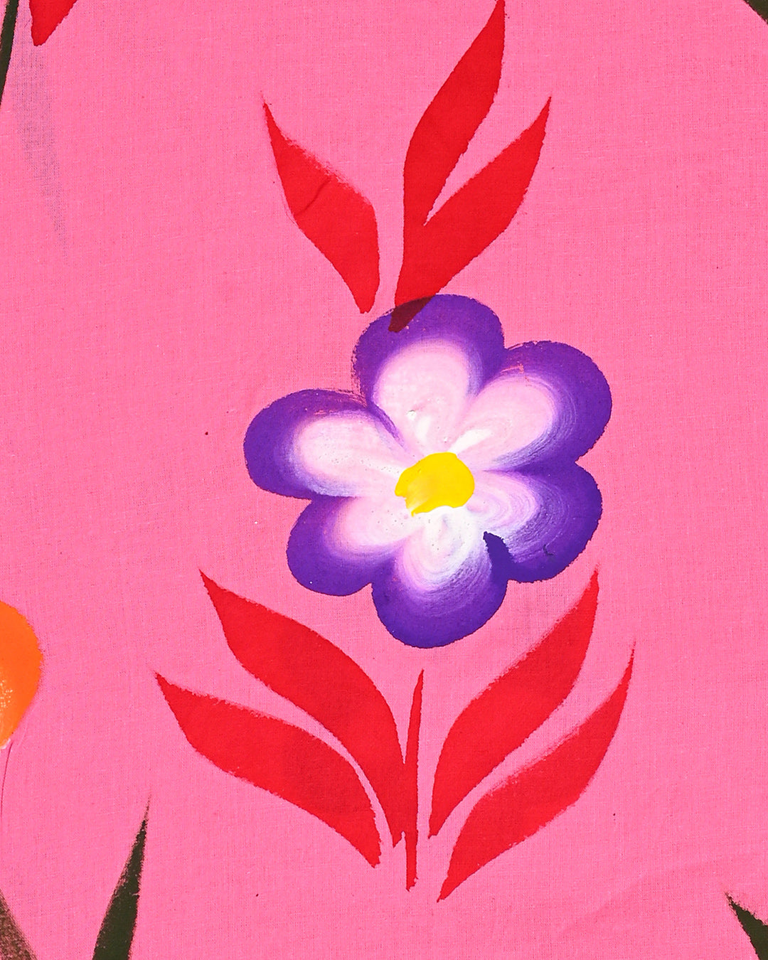 Hand block printing is a centuries old art form that utilizes a hand carved wood block , dipped in dye and stamped by hand onto fabric.