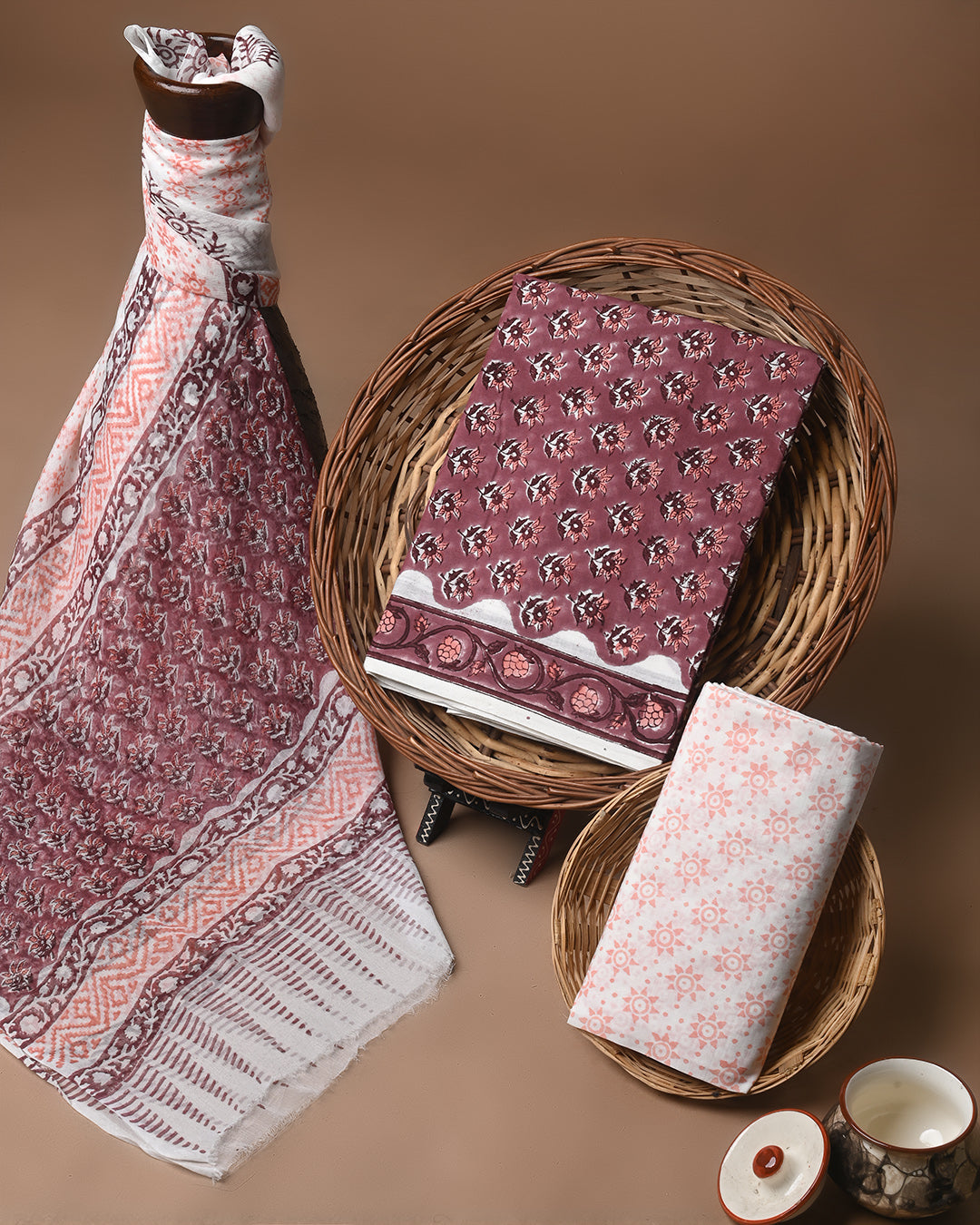 New Sanganeri Printed Cotton Suit With Chiffon Dupatta CFCOTCH15