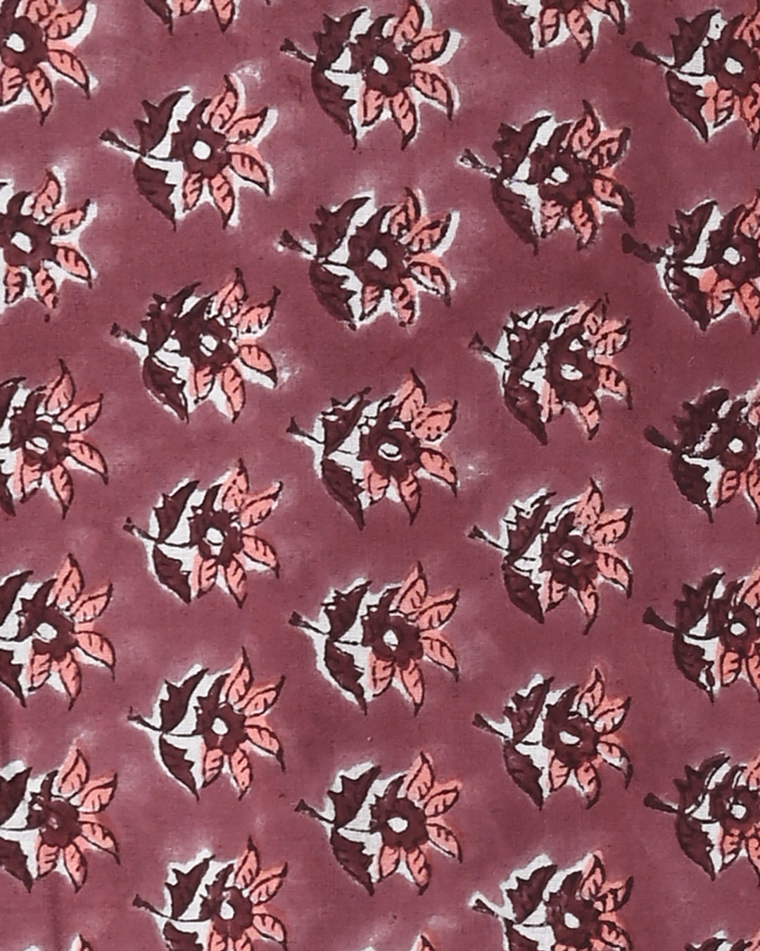 Hand block printing is a centuries old art form that utilizes a hand carved wood block , dipped in dye and stamped by hand onto fabric.