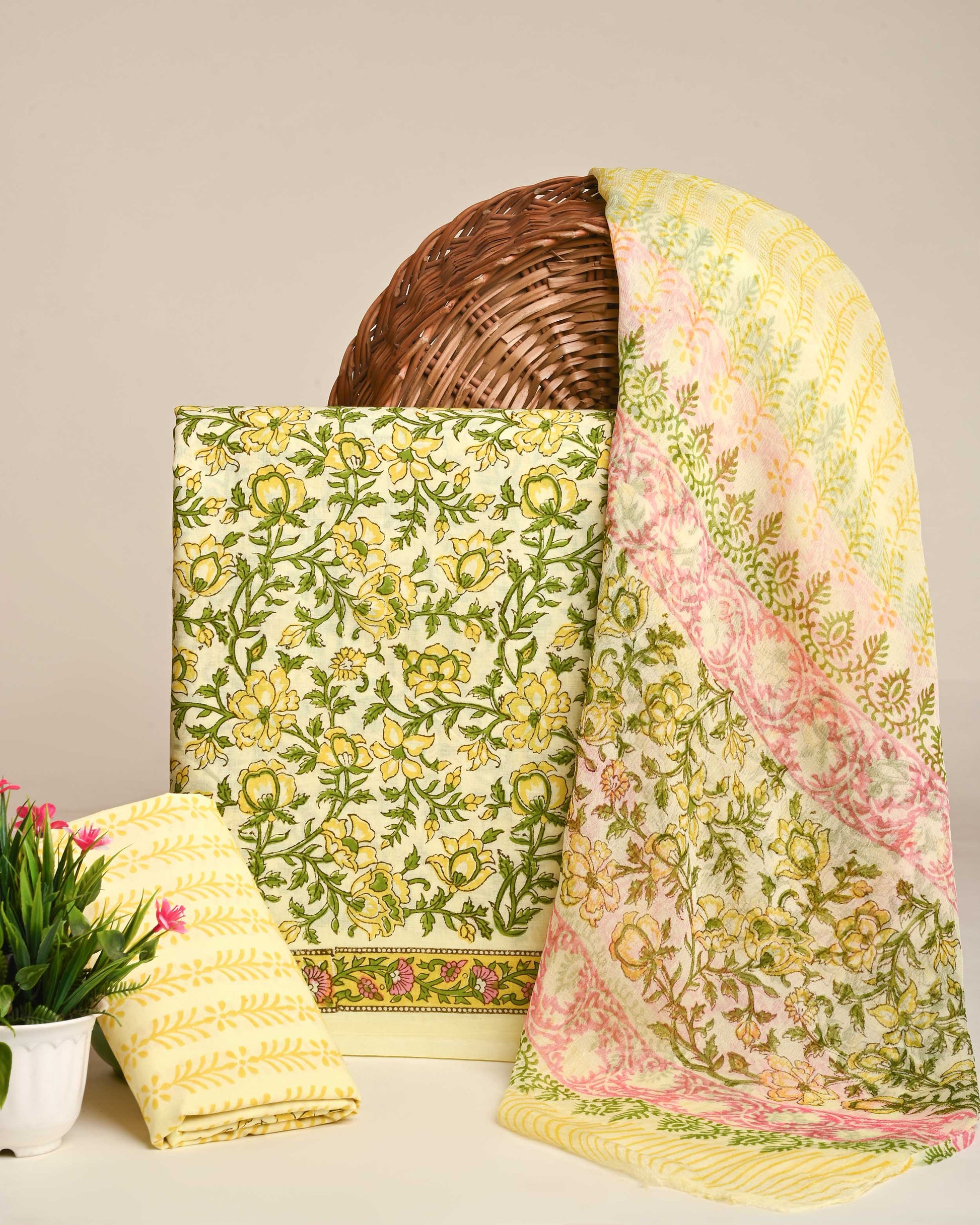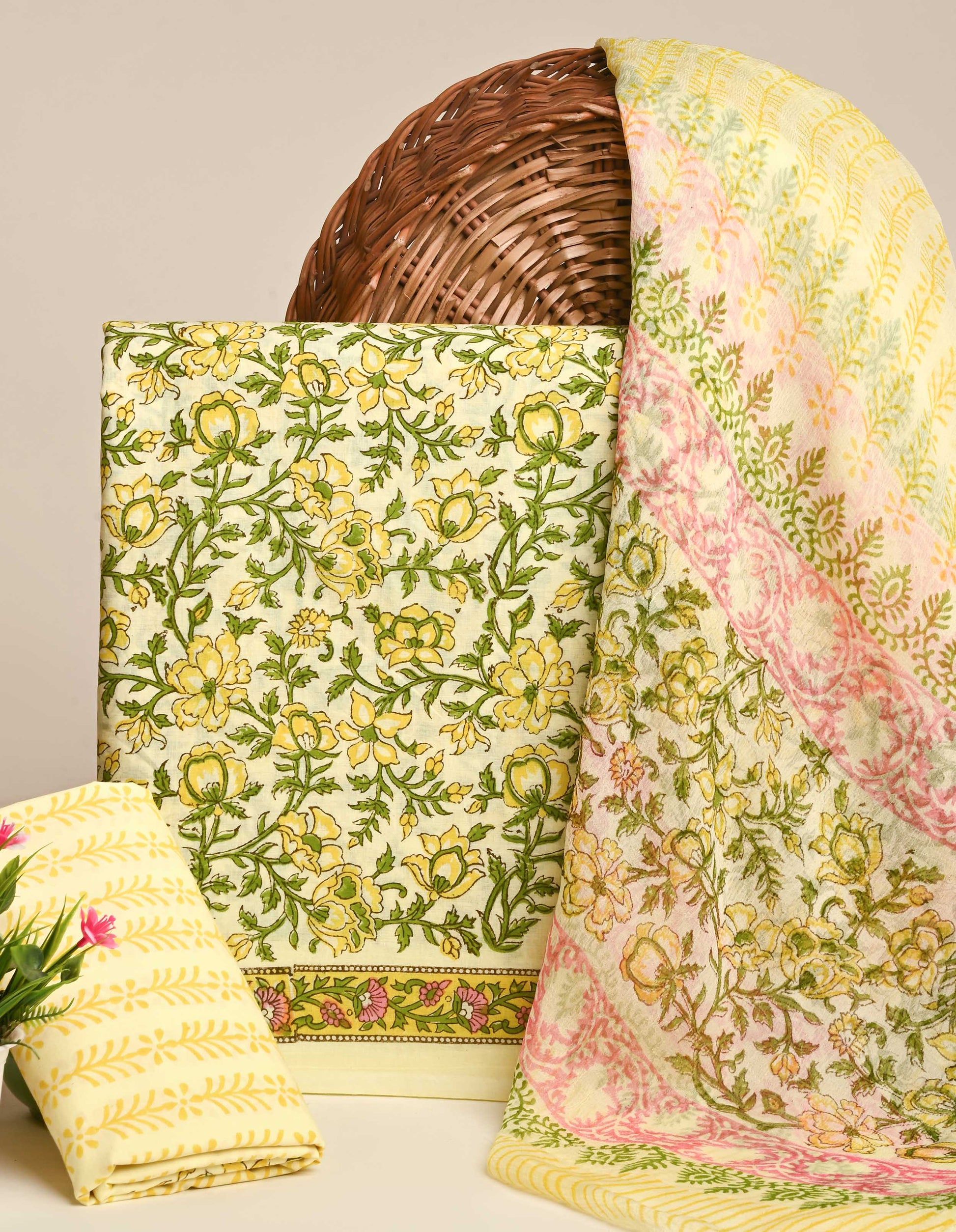 New Sanganeri Rapid Printed Cotton Suit With Chiffon Dupatta (CFCOTCH42)