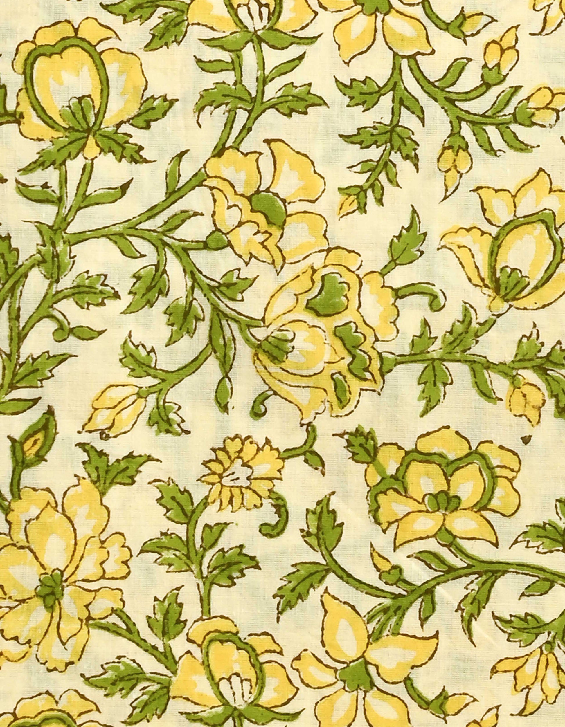 Hand block printing is a centuries old art form that utilizes a hand carved wood block , dipped in dye and stamped by hand onto fabric.