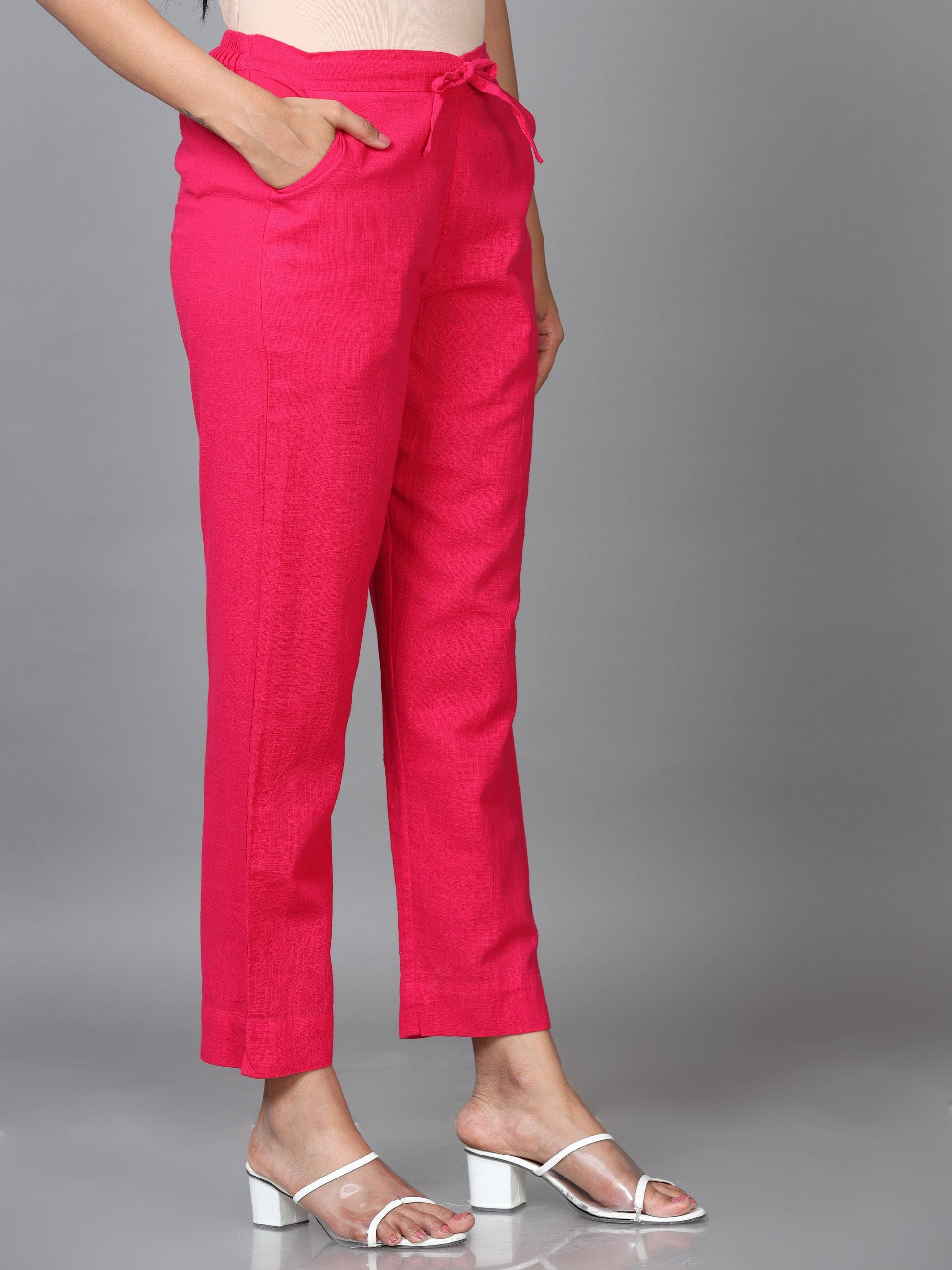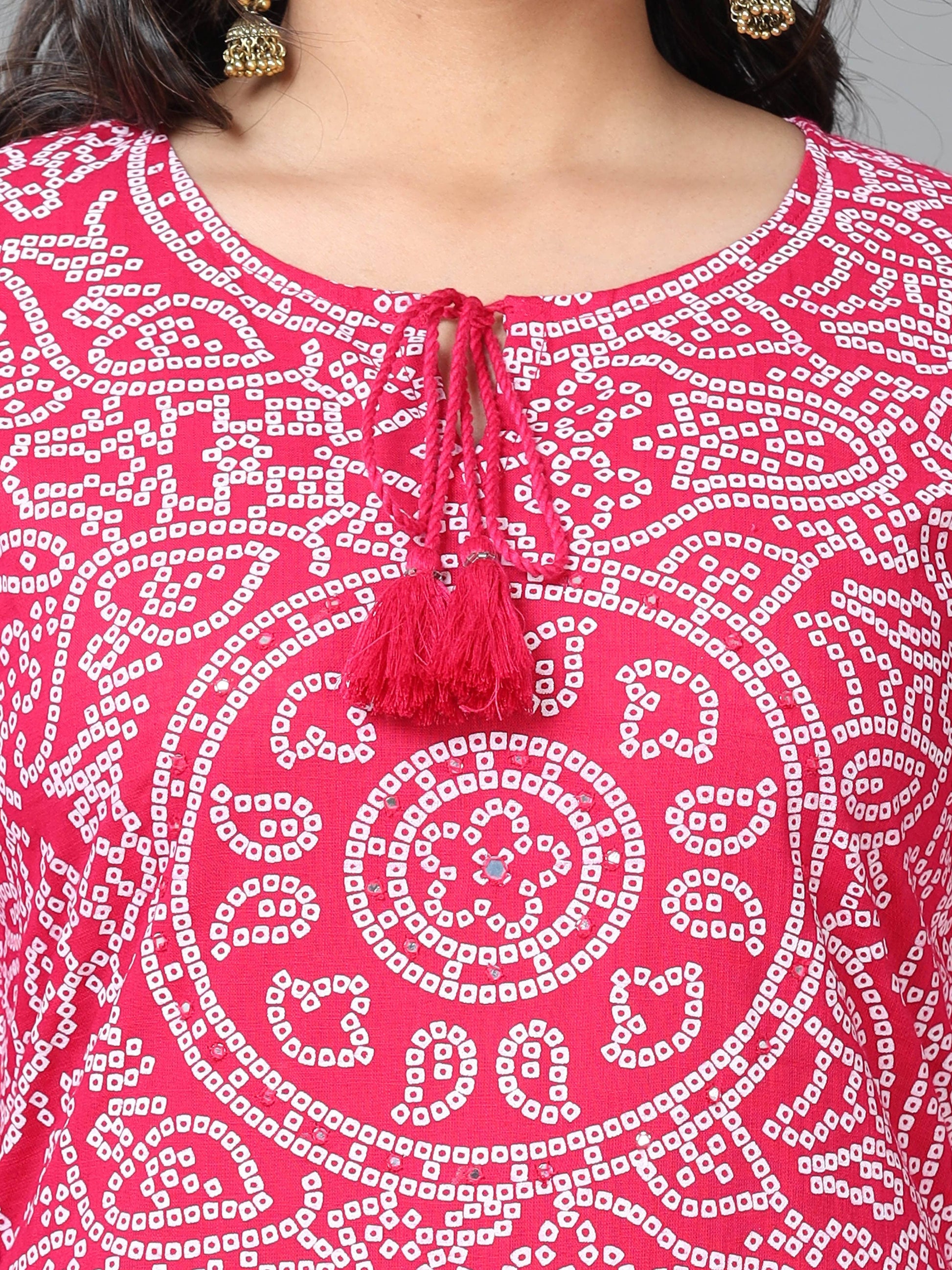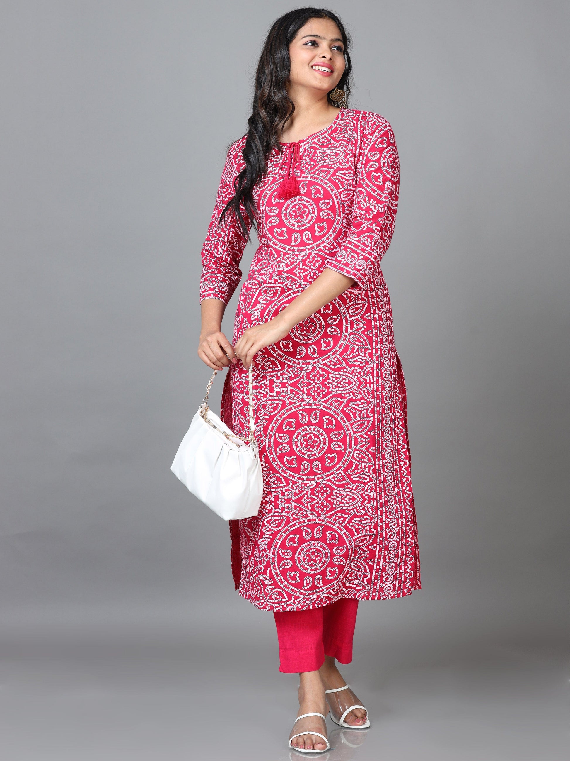 Pink 3/4 Sleeve Cotton Printed Straight calf-long Kurta Set