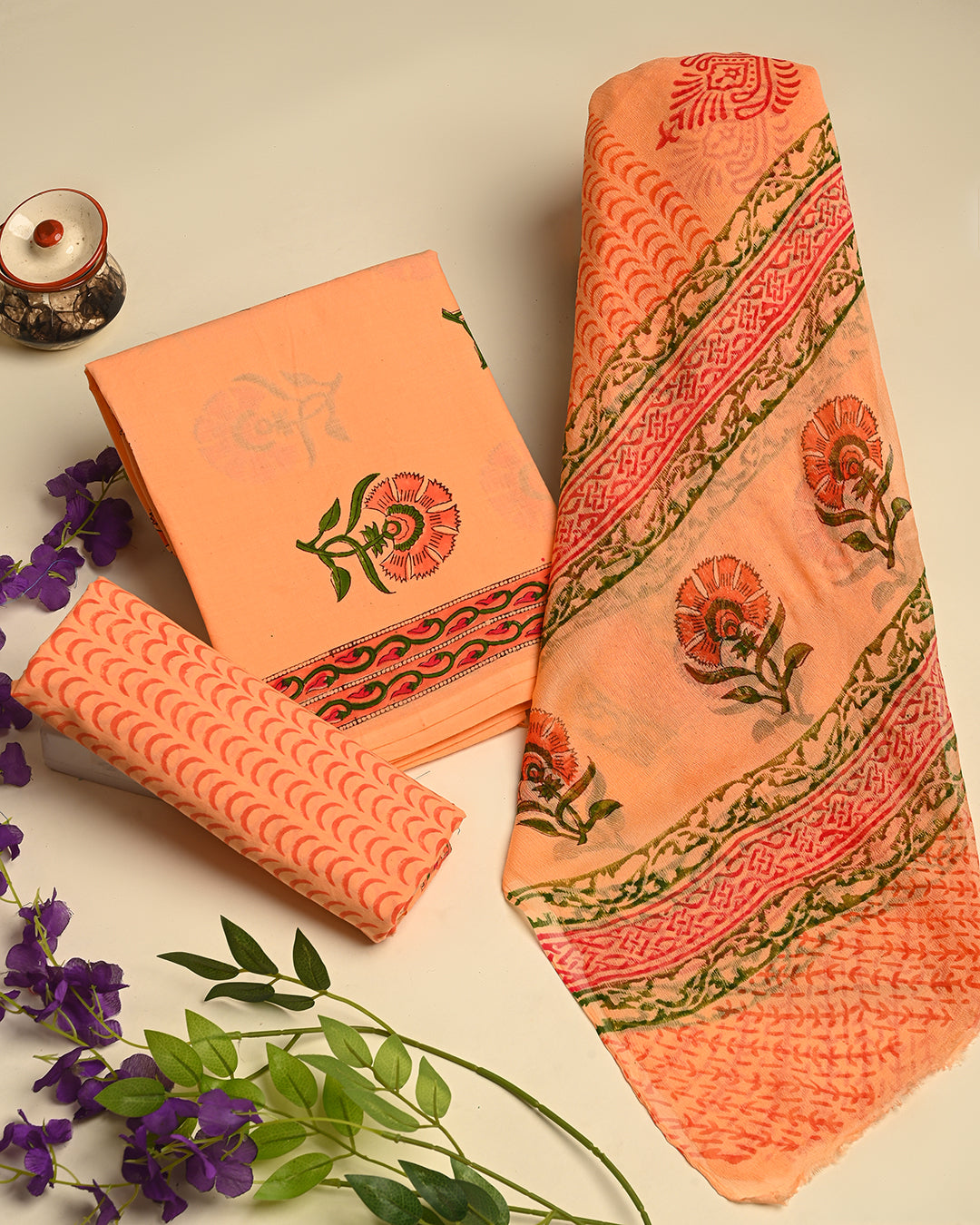 Premium Orange Hand Painted Rapid Printed Cotton Suit With Chiffon Dupatta (CFCOTCH38)