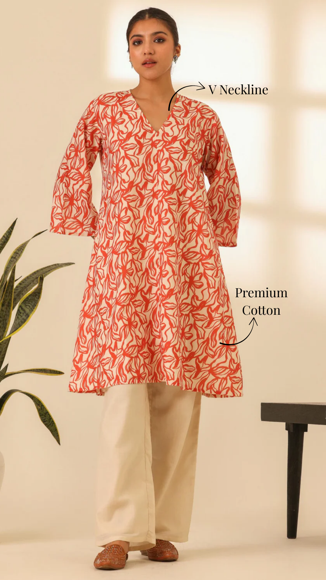 Detailed with vibrant Orange Abstract Floral prints for a bold, stylish statement.