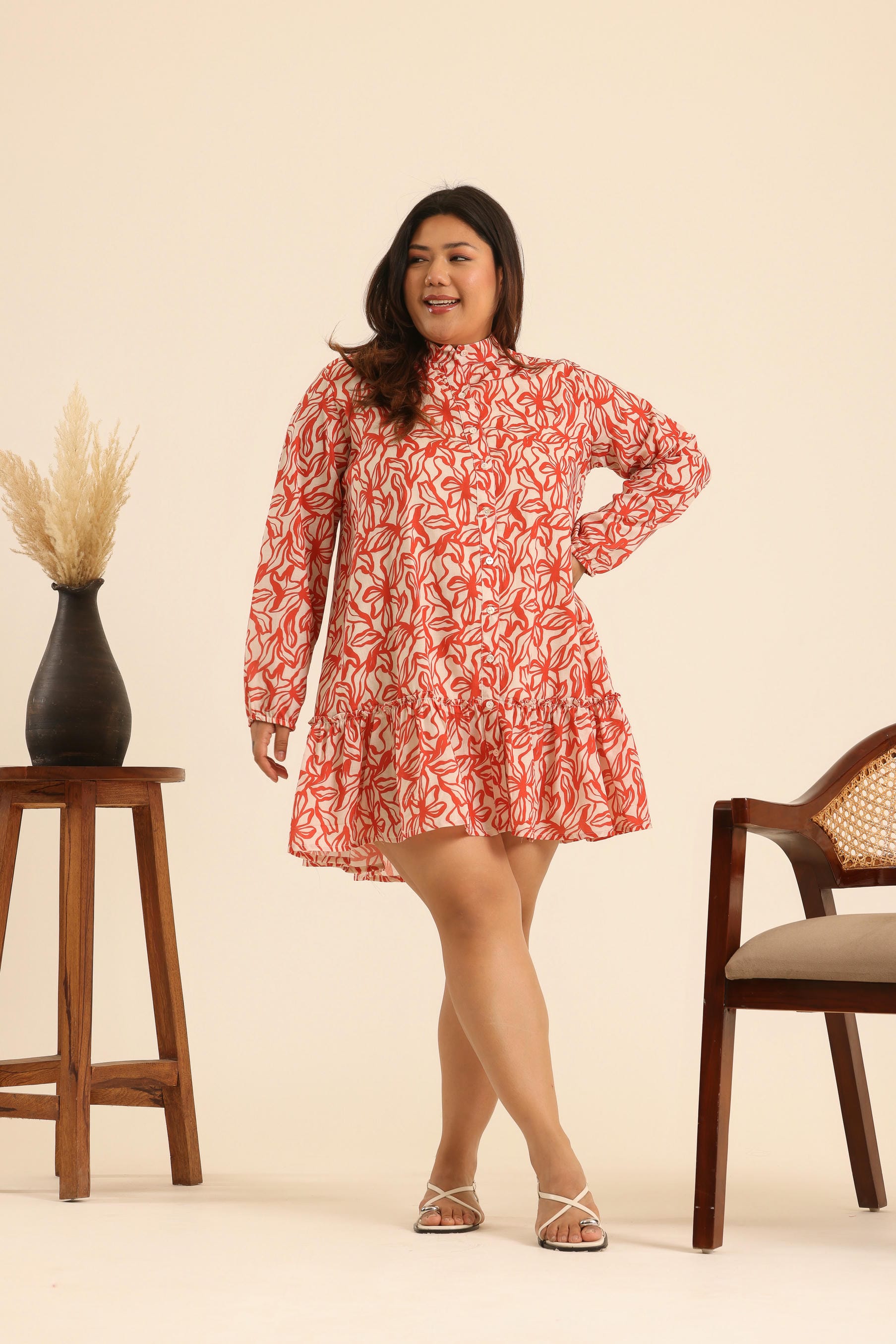 This Printed Dress in Orange Abstract Floral is ideal for a Casual Outing.