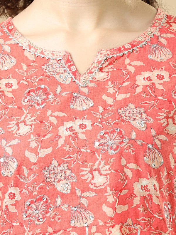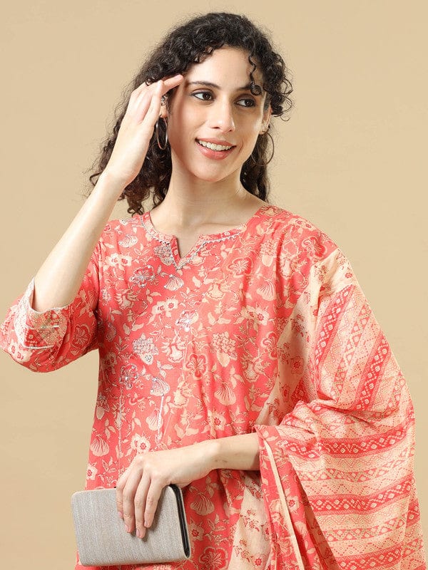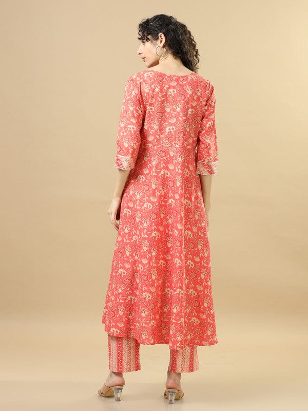 Saffron 3/4Th Sleeves Cotton Regular Fit Ankle Length Asymmetrical Kurta Set - With Dupatta