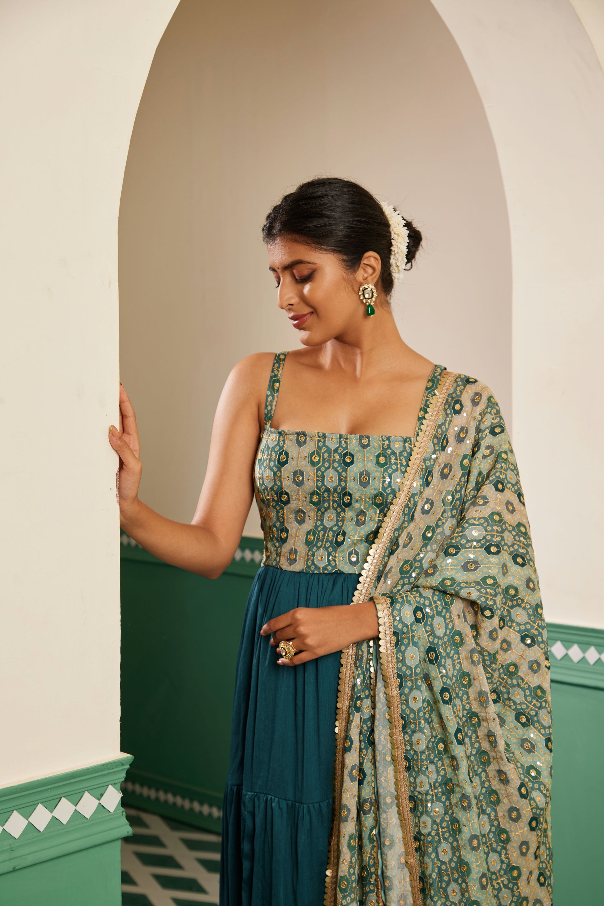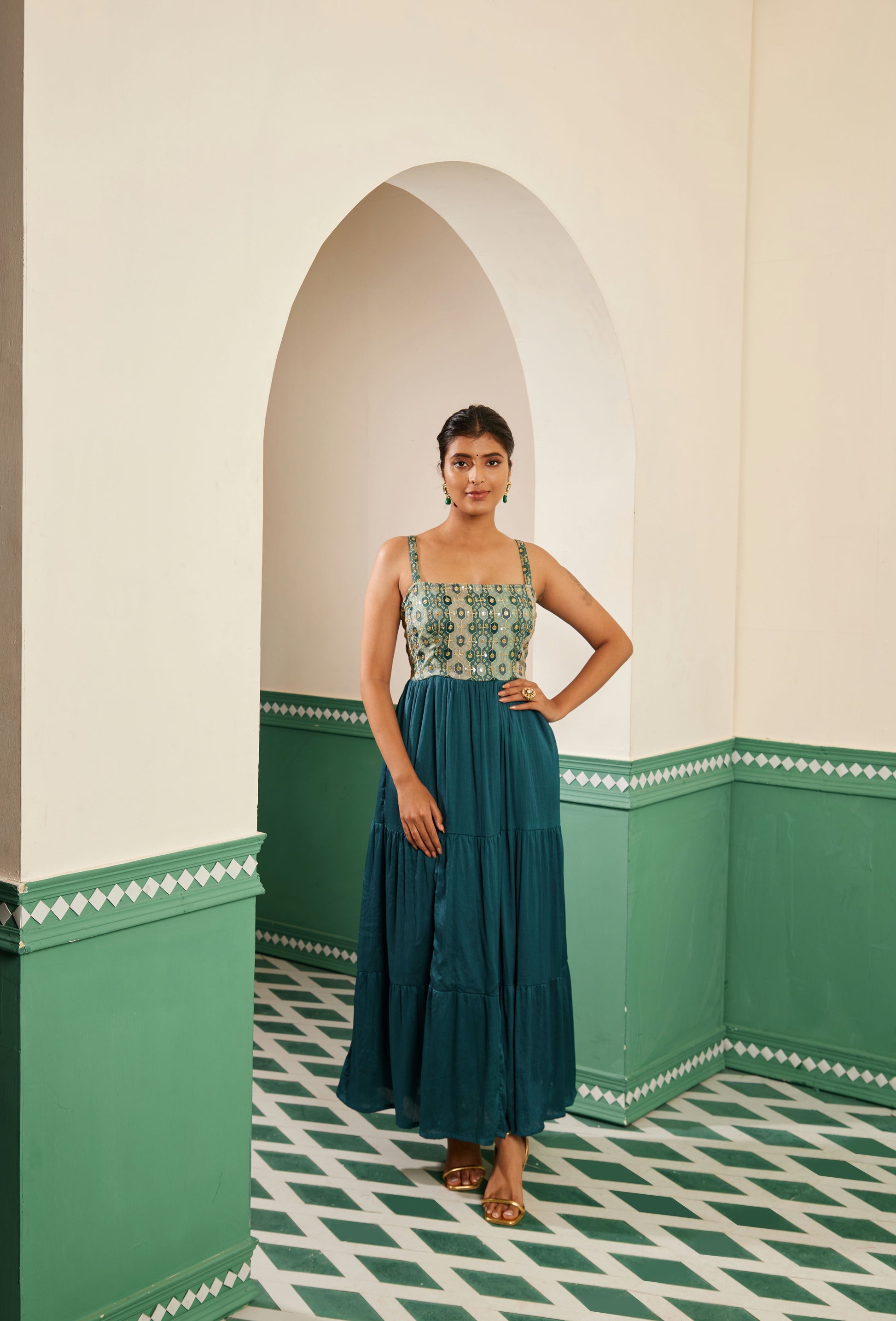 Sajda Teal Embroidered Maxi Dress