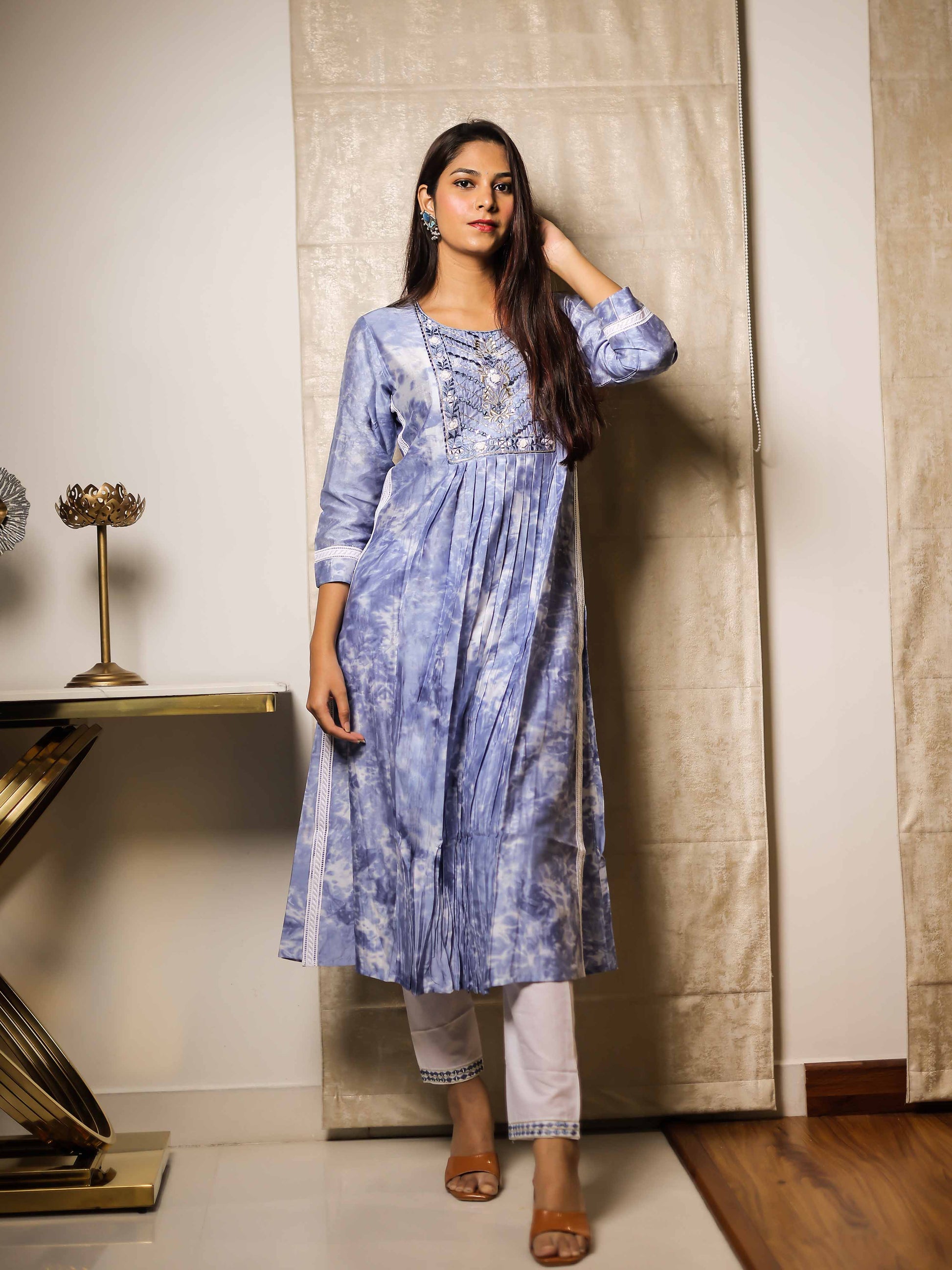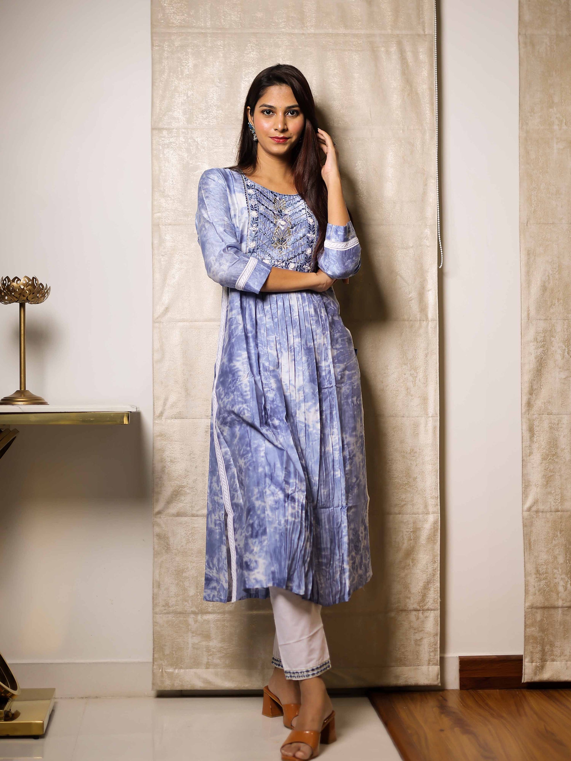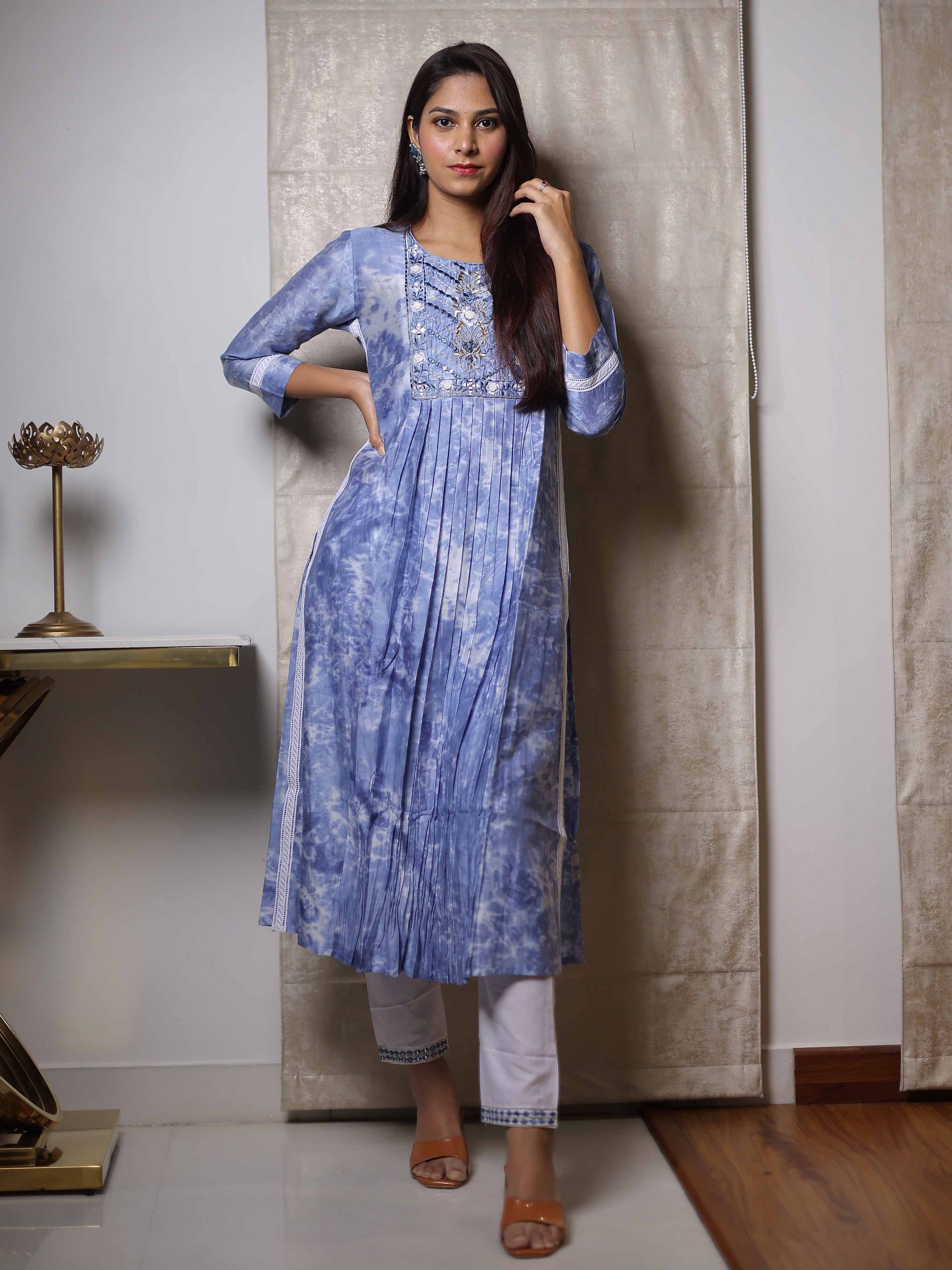 Sky Blue 3/4th Sleeve Kurta Set