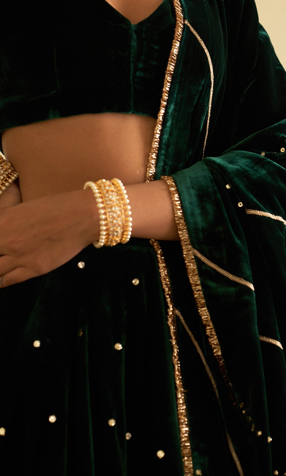 - FABRIC USED: Blouse-Velvet Lining-Shantoon Lehenga-Velvet Lining-Shantoon Shawl Velvet