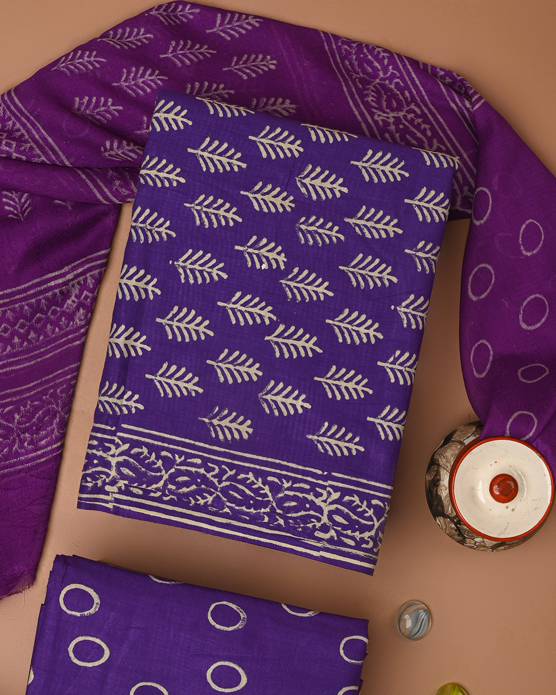 Traditional Blue Discharge Cotton Sets With Chiffon Dupatta CFCOTCH48